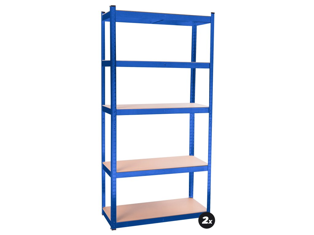 Aga 2x Kovový regál 180x90x40 cm 5 polic Modrý