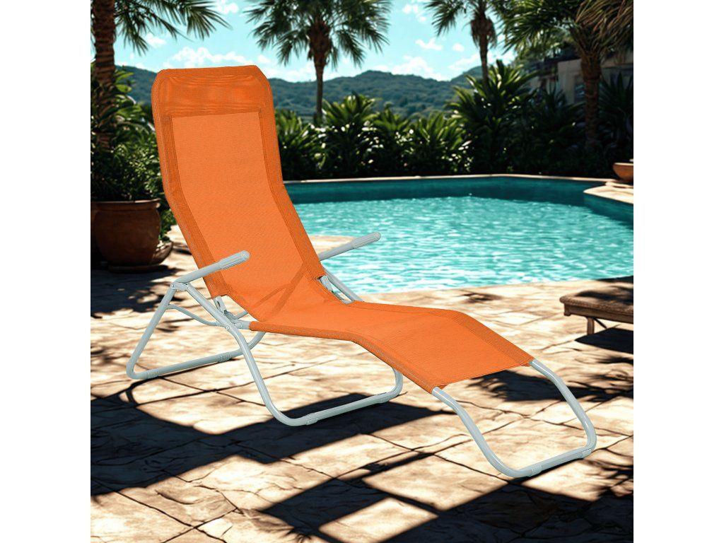 Aga Zahradní lehátko SIESTA, Odolné, Oranžové, ocel, 120 kg, 142x58 cm