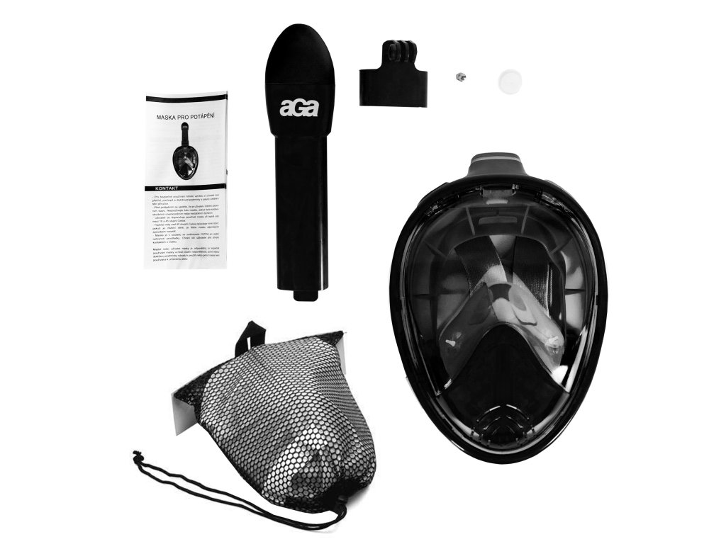 Aga Celoobličejová šnorchlovací maska S/M Černá/Černá