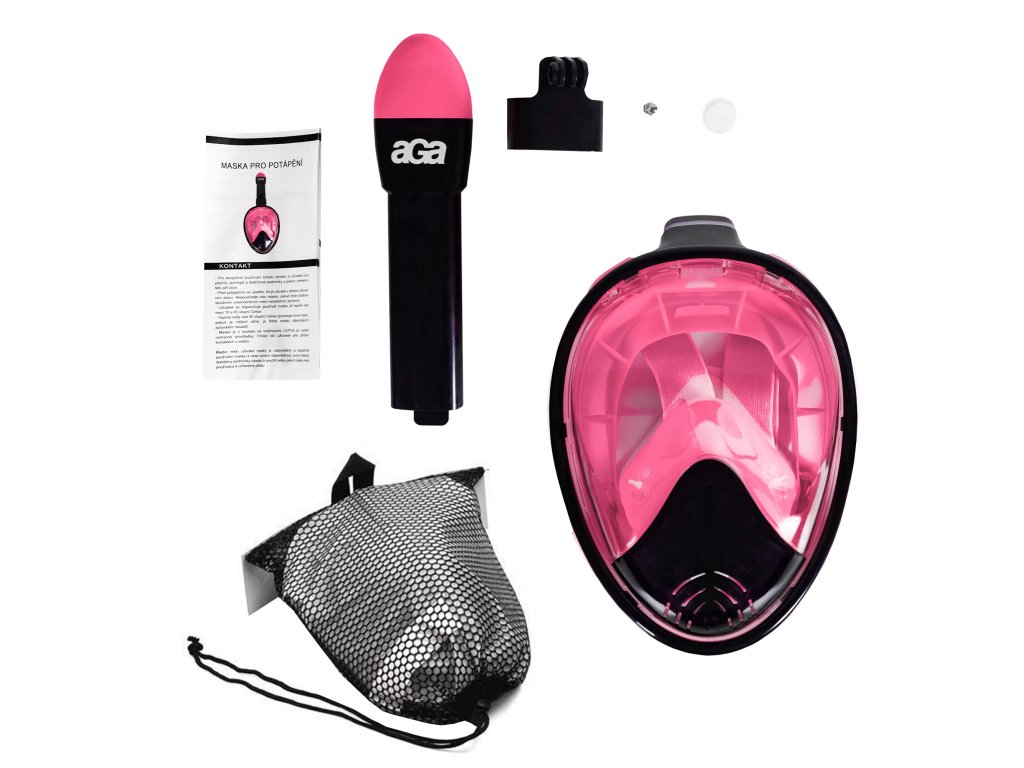 Aga Celoobličejová šnorchlovací maska S/M Černá/Růžová
