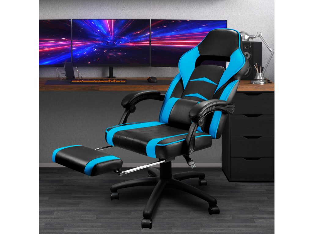 Aga Kancelářská židle Černo - Světle modrá s opěrkou pro nohy
