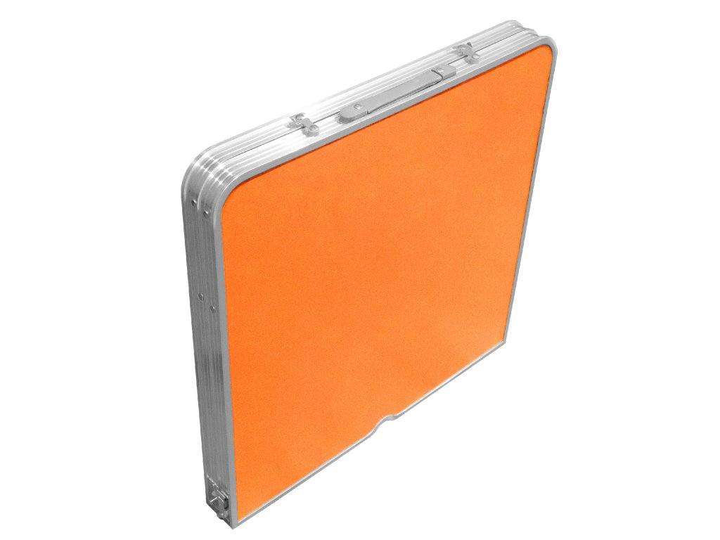 - Ve sbaleném stavu je stůl židle snadno přenosný v podobě ploché desky s uchem