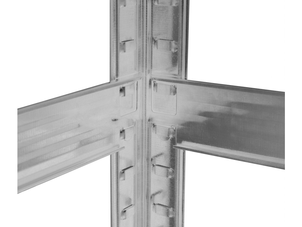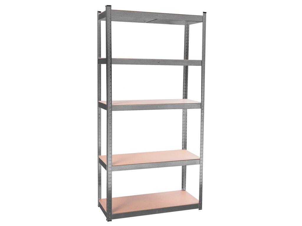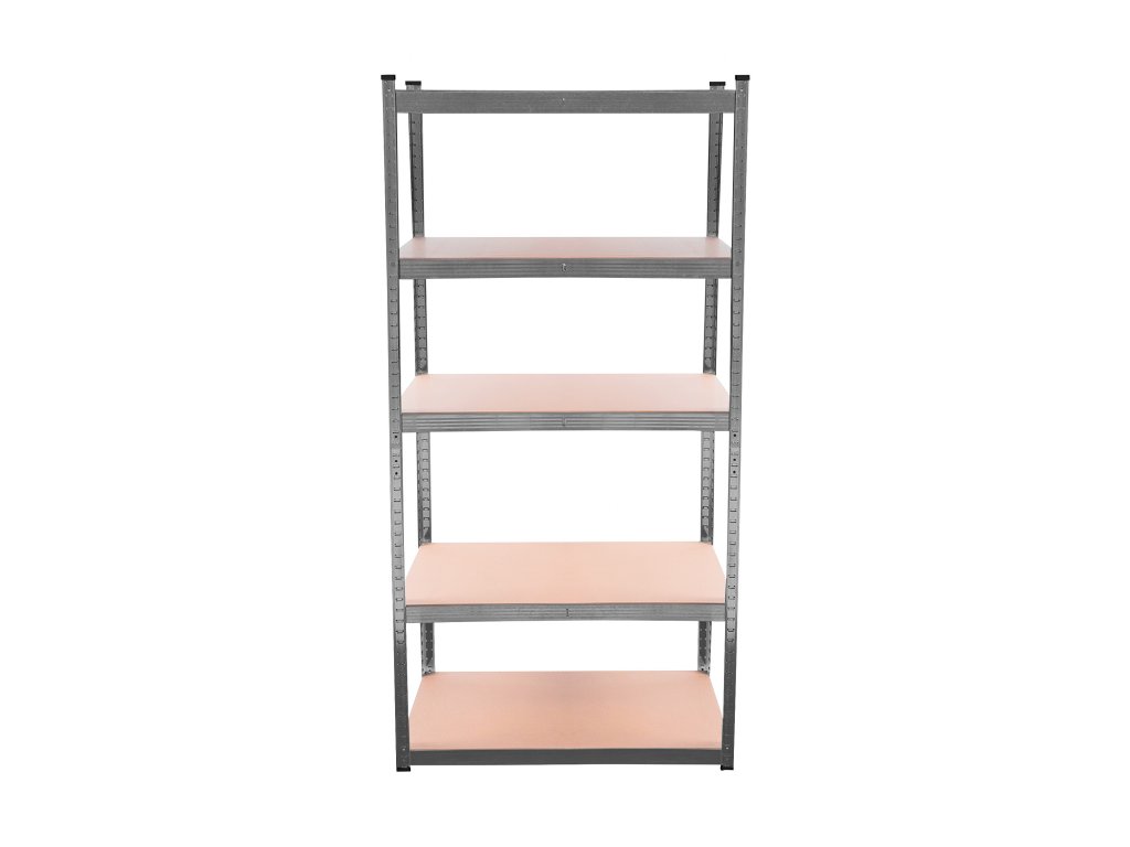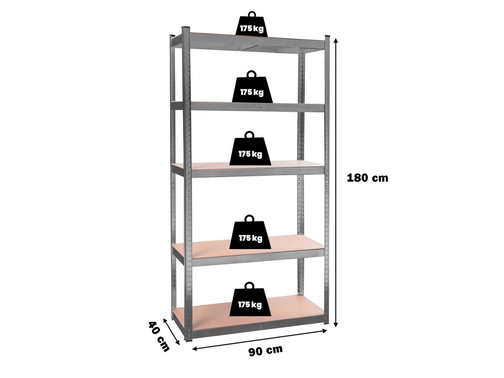 Na výšce cca 180 cm máte k dispozici 5 polic z mdf, které lze výškově vložit dle potřeby. Rám z galvanizované oceli v černé barvě zaručuje stabilitu a velkou nosnost cca 875 kg (na každou polici připadá cca 175 kg).