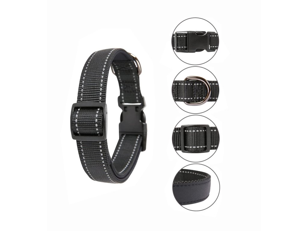 Vysoký komfort při nošení je zajištěn díky měkkému neoprenovému polstrování na vnitřní straně. Obojek má reflexními prvky pro větší bezpečnost. Obojek je plynule nastavitelný pro obvod krku od 30 cm až do 40 cm.