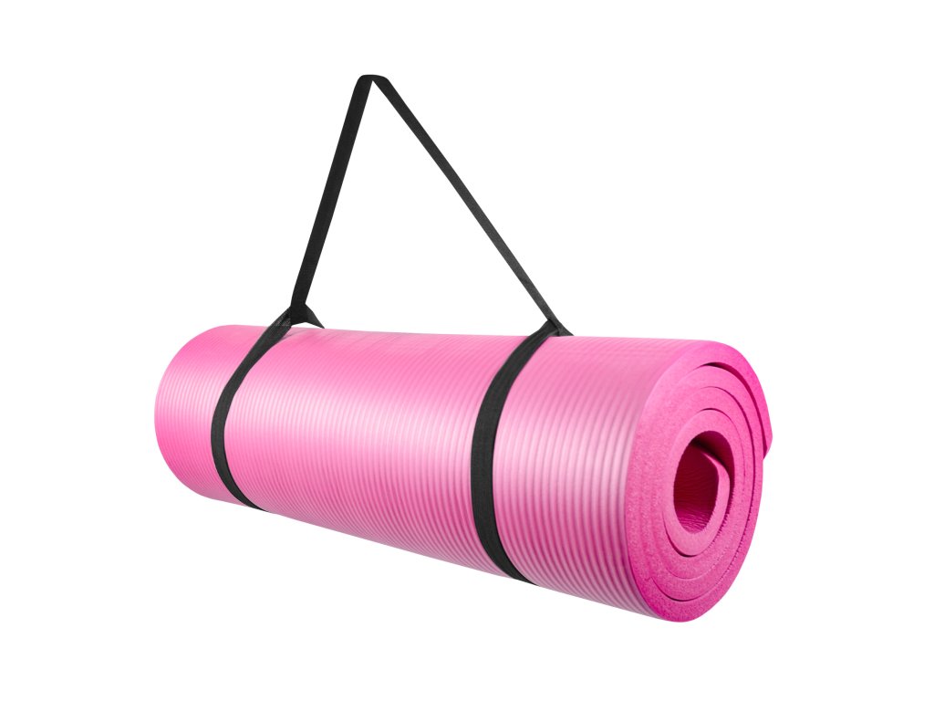 Aga Podložka na cvičení, Omyvatelná, Rolovací, s popruhem, Růžová, NBR pěna, 180x50 cm, 1,5 cm