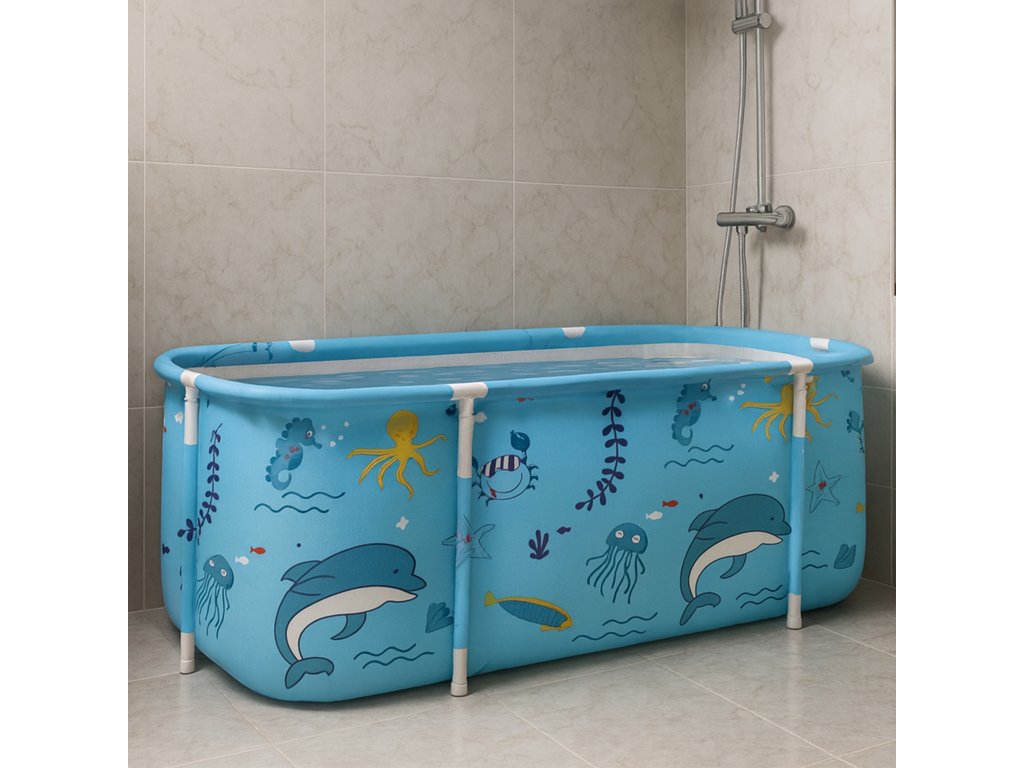 Skládací přenosná vana má rozměry 120 × 60 × 50 cm, takže nabízí dostatek prostoru pro pohodlnou koupel i v menších domácnostech.