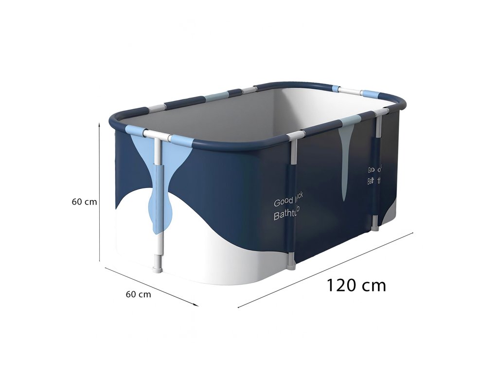 Skládací přenosná vana má rozměry 120 × 60 × 60 cm, takže nabízí dostatek prostoru pro pohodlnou koupel i v menších domácnostech.