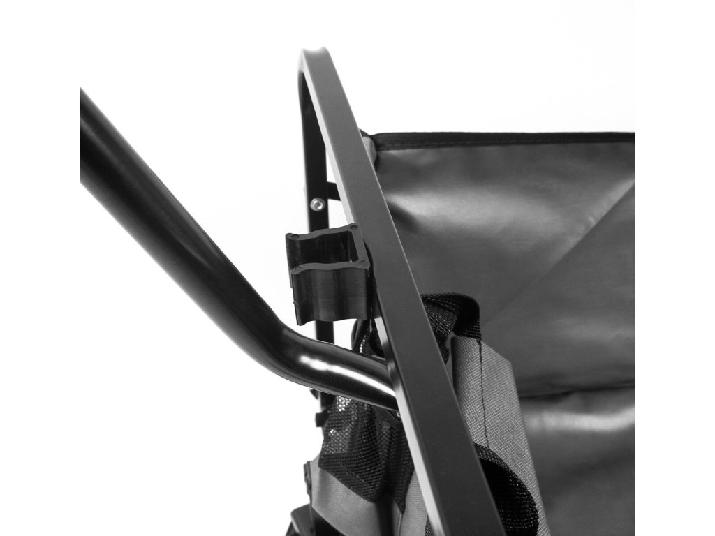 Pomocí tyče na přední straně se da vozík jednoduše posouvat. Na přední straně vozíku také najdete dvě síťované kapsy k odložení menších předmětů.