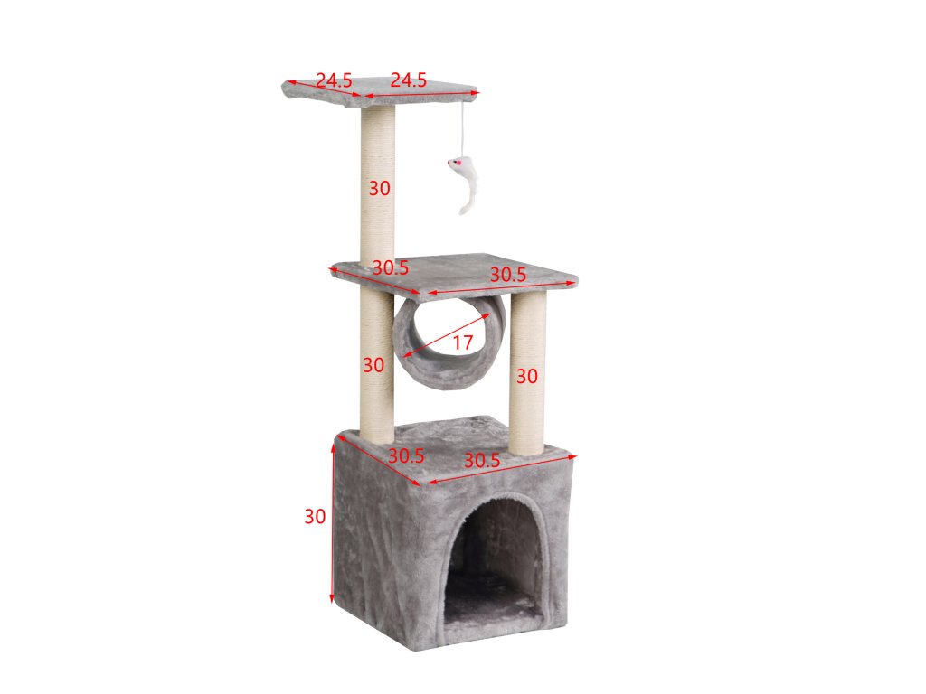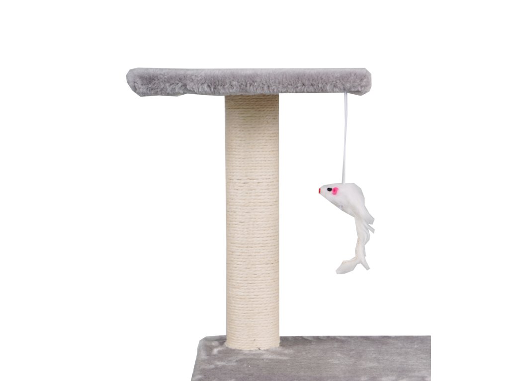 - Škrabadlo obsahuje: domeček pro možnost úkrytu, 2 odpočívadla, tunel, hrací myška připevněná na elastickém provazu a sloupky částečně potažené sisalem