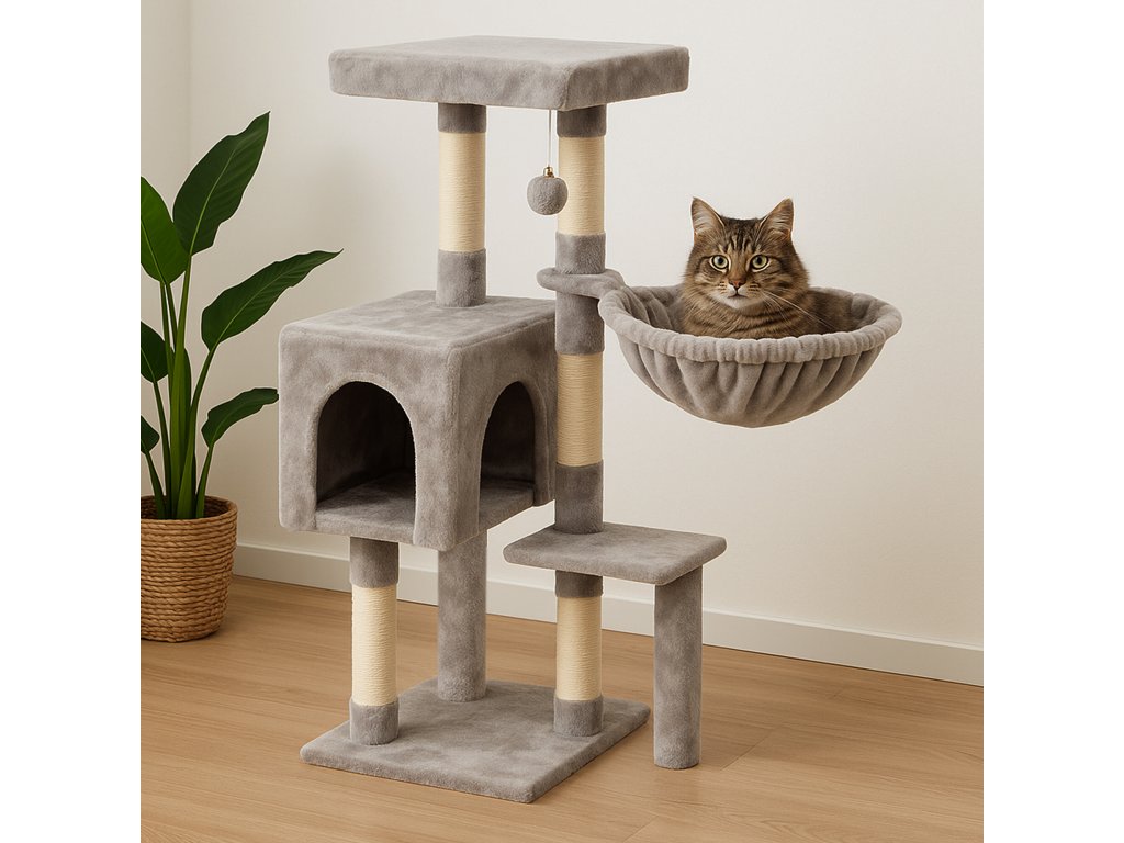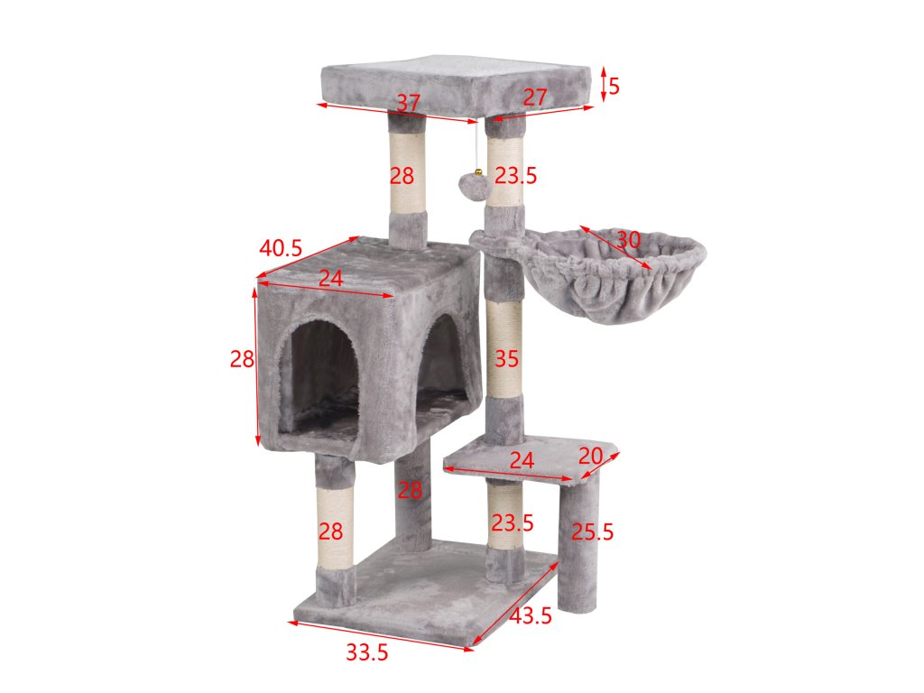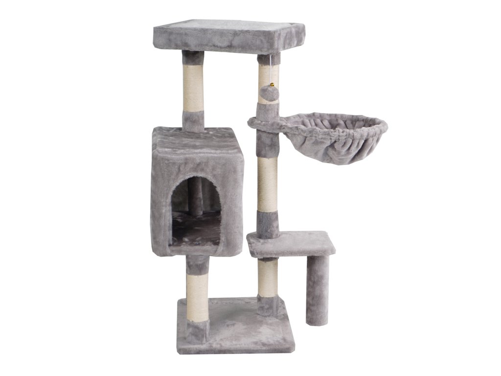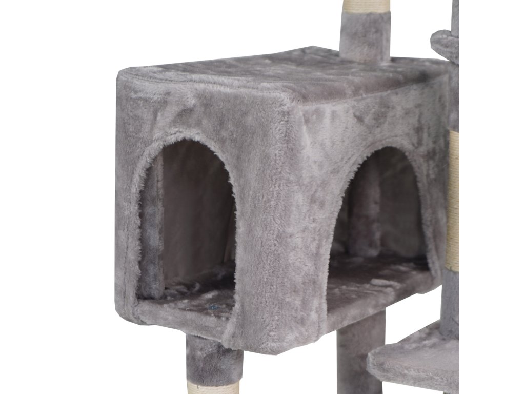 Kvalitní a silný sisal, kterým jsou omotány škrabací sloupky, je perfektní pro zdravé drápky, aniž by k tomu zneužívala vaše domácí vybavení. Měkký velur pokrývající domeček a odpočívadla zase vybízí k relaxaci a sladkému spánku. Díky promyšlenému designu s otočnými odpočívadly a hracími míčky na elastických provazech se vaše kočka nikdy nebude nudit. Je to ideální řešení pro aktivnější kočky, které milují běhání, skákání a objevování.