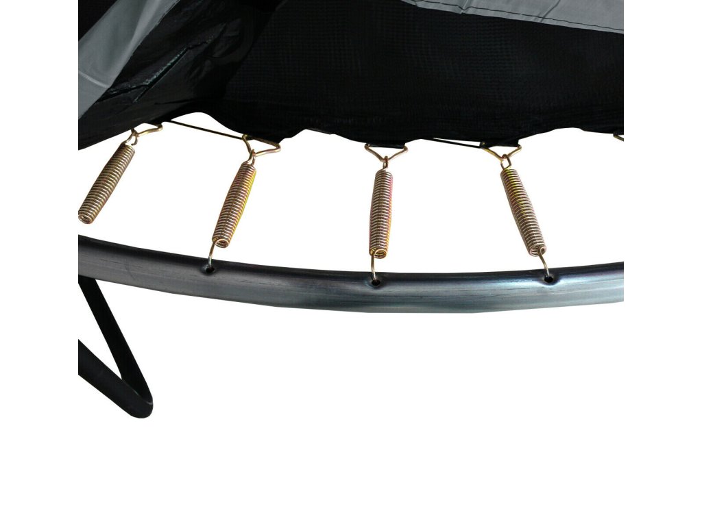 Vaše bezpečí je naší prioritou. Vnitřní ochranná síť z odolného PE materiálu spolehlivě zabrání vypadnutí z trampolíny, zatímco ochranný kryt pružin chrání nejen pružiny před vlivy počasí, ale především uživatele před zraněním. Vstupní otvor se zipem ve tvaru L a dodatečným bezpečnostním zapínáním zajistí, že trampolína bude vždy zcela uzavřena.