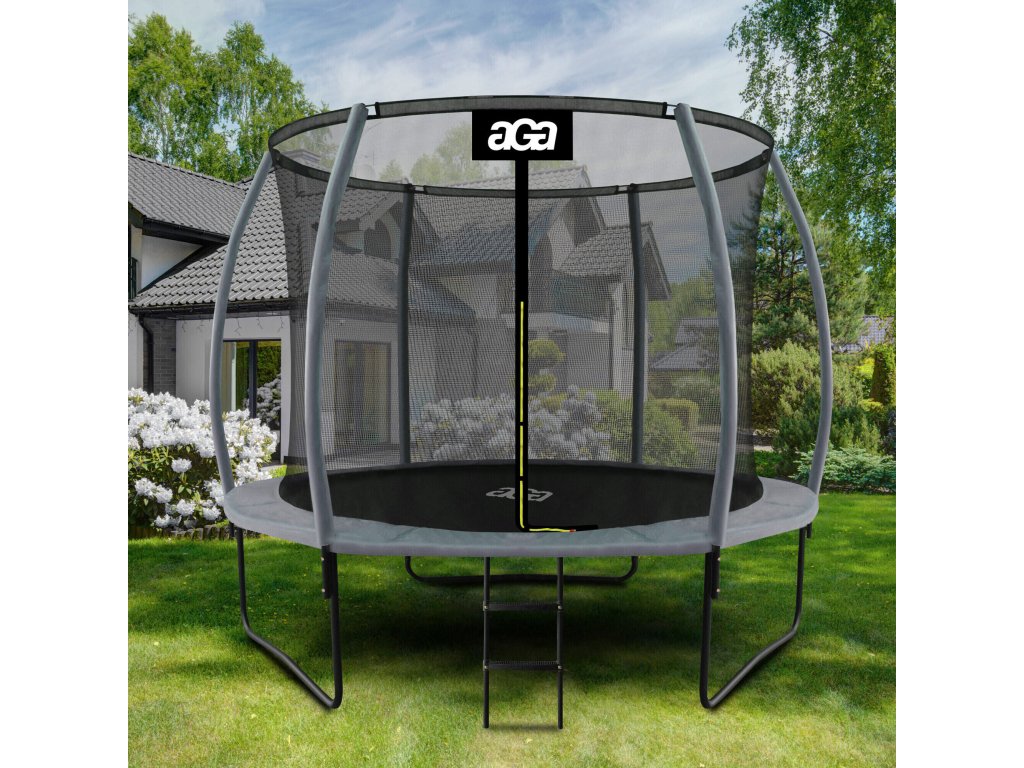 Aga SPORT EXCLUSIVE Trampolína, 305 cm, Šedá, vnitřní síť, nosnost 180 kg, s žebříkem, ocelová konstrukce, výška 256 cm, 60 pružin
