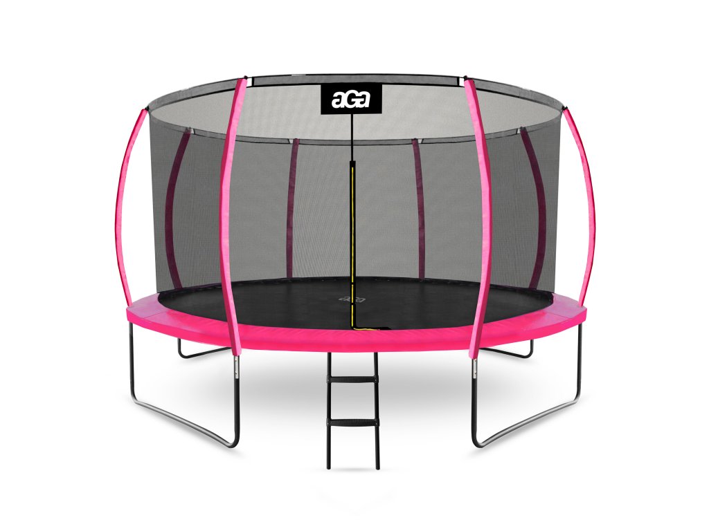 Aga Trampolína SPORT EXCLUSIVE Kompletní, 366 cm, Růžová, Vnitřní síť, Nosnost 180 kg, 72 pružin, Ocelová konstrukce, Výška 256 cm