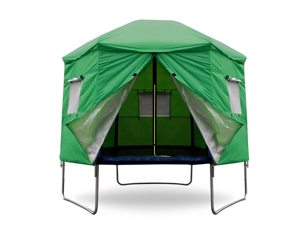 A v době kdy trampolína není aktivně využívána, pomáhá stan chránit odrazovou plochu před znečištěním a UV zářením.