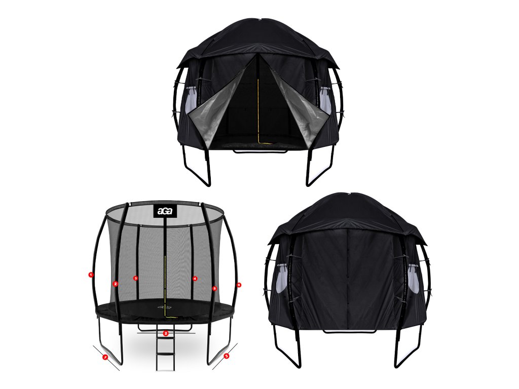 A v době kdy trampolína není aktivně využívána, pomáhá stan chránit odrazovou plochu před znečištěním a UV zářením.