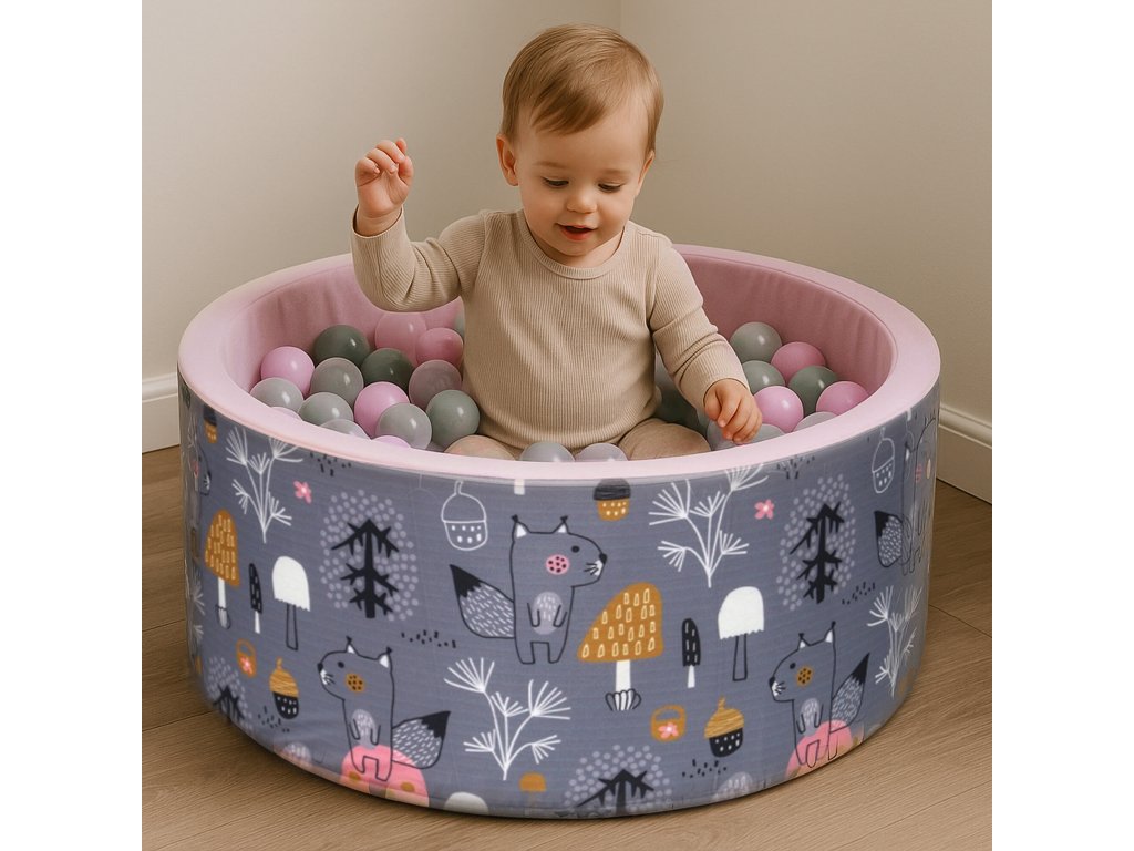 Stěny bazénku jsou vyplněny odolnou polyuretanovou pěnou, která je potažena látkou.