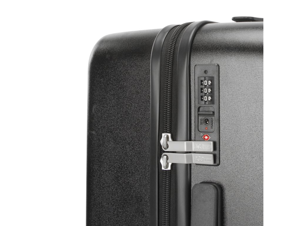 Bezpečné uchování věcí vám zajistí třímístný kódový zámek, kterým je kufr vybaven. Kufr je uzavíratelný zipem. Oba jezdce zipu se dají zapojit do zapuštěného kódového zámku.