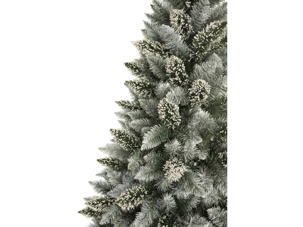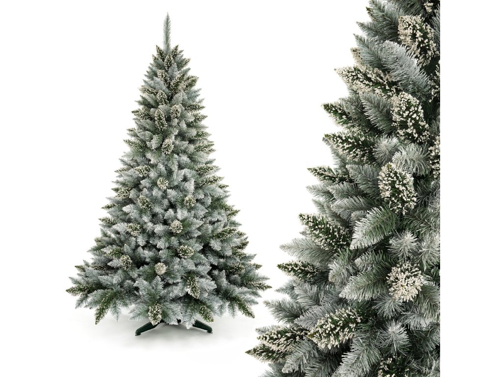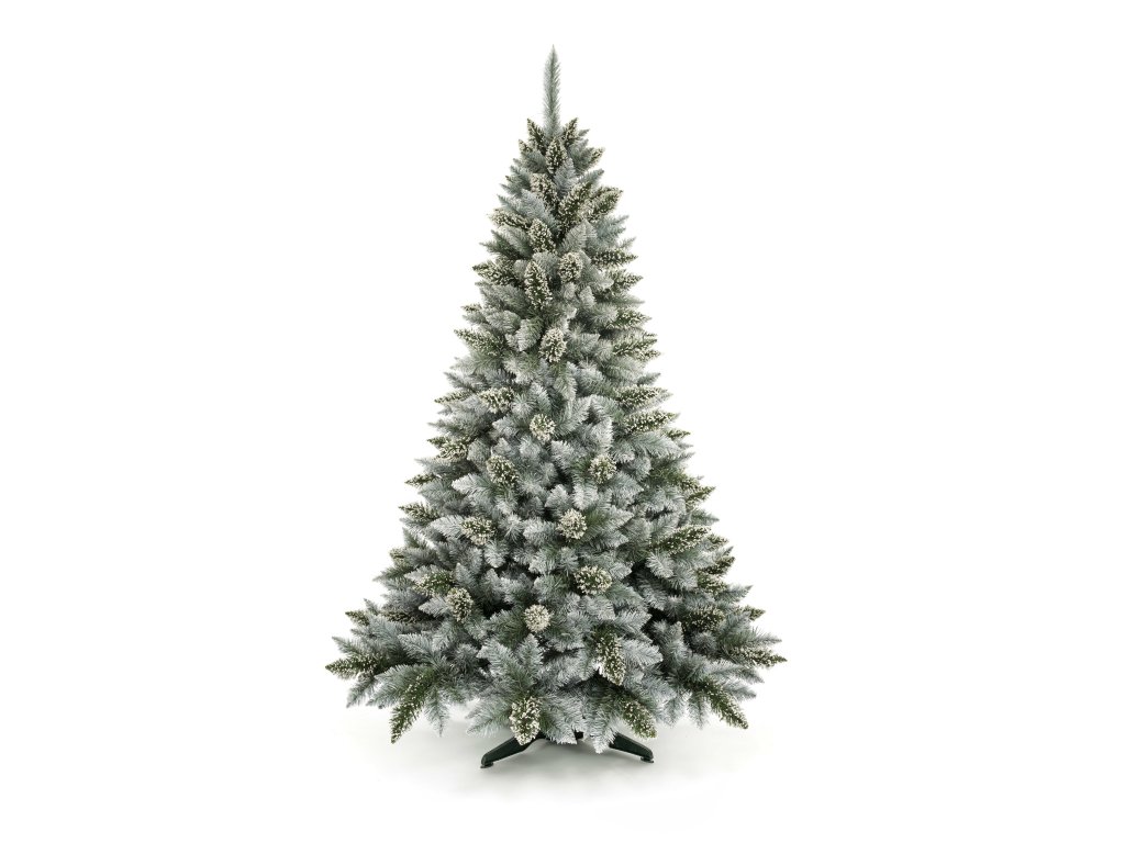 Luxusní umělý vánoční stromeček s celkovou výškou 150 cm v přírodním vzhledu zasněžené zelené husté borovice.