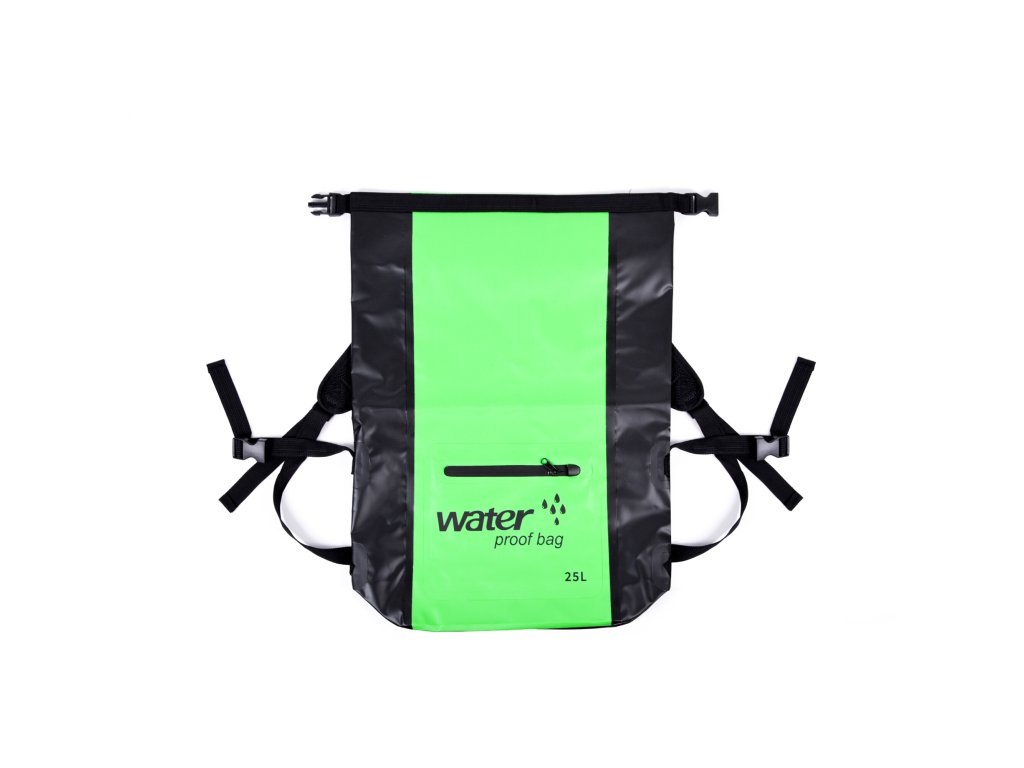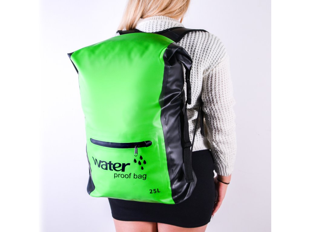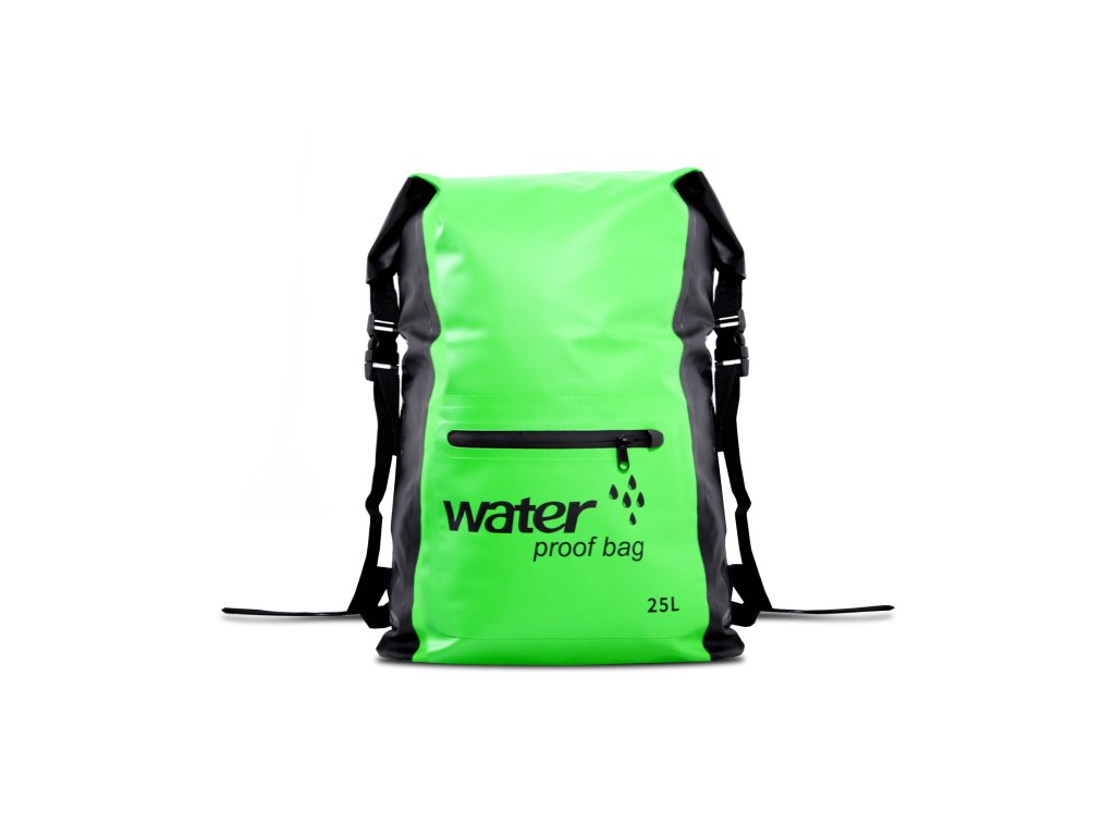 Skládací voděodolný batoh disponuje objemem 25 litrů.
