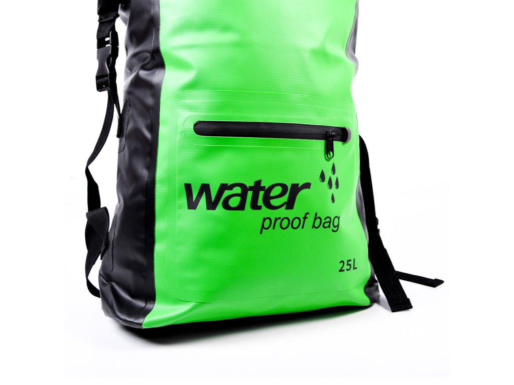 Naplňte batoh věcmi tak, aby zůstala aspoň čtvrtina vaku prázdná. Vrchní část přeložte alespoň třikrát až pětkrát směrem dolů, potom oba konce spojte a zacvakněte přezku. Vaše věci tak budou perfektně chráněny proti vodě a vlhkosti, a to například i v případě převrácení lodi.