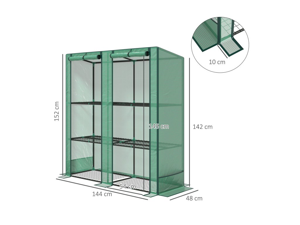 Konstrukce fóliovníku je vyrobená z pevných kovových trubek. Průhledný kryt s dvojitým zipem zajišťuje snadný přístup.