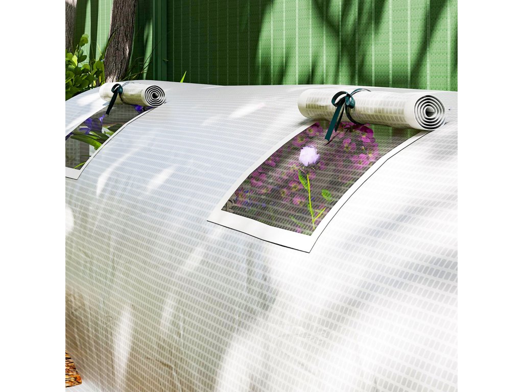 Rozebíratelná konstrukce fóliovníku je vyrobená z pevných kovových trubek a výplň je z pevné a trvanlivé PVC fólie.