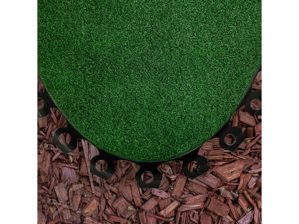 Pokud je potřeba kratší délka, lze černý plastový obrubník jednoduše zkrátit zastřižením. Pro rovné úseky se doporučuje použít více kotev, aby byl obrubník stabilní a nedocházelo k nežádoucímu pružení.