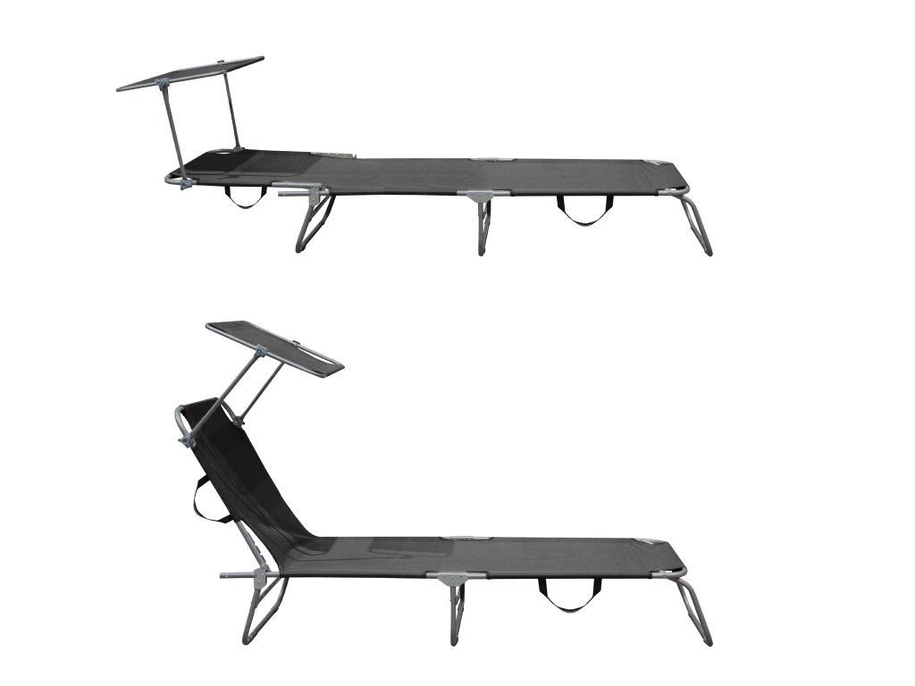 Skládací zahradní lehátko se zpevněnou ocelovou konstrukcí, v moderním designu, vhodné pro zahrady, na kempování či pláže.