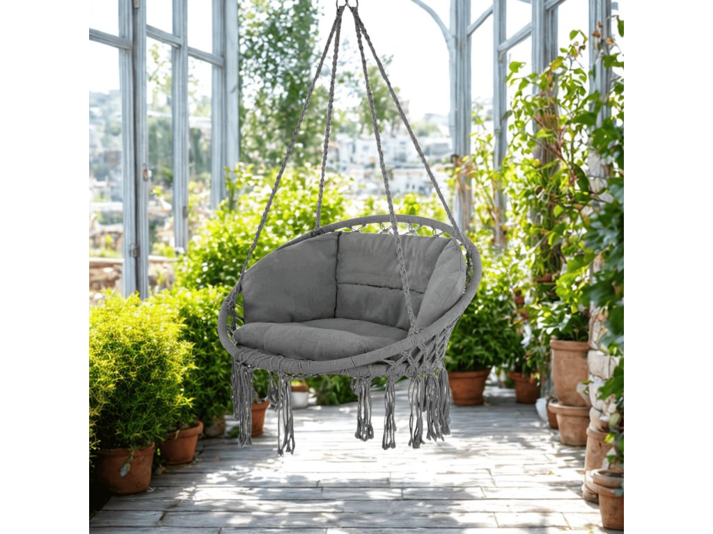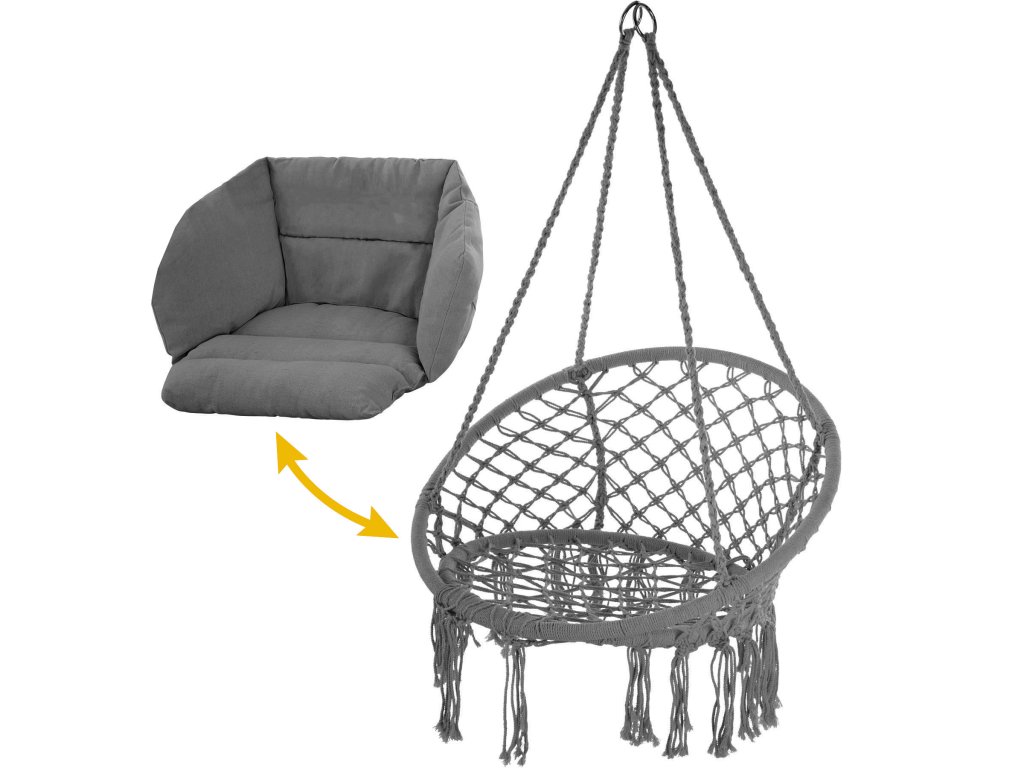 Závěsný koš v sobě spojuje komfort a nejnovějšími designovými trendy. Zajímavá konstrukce v kombinaci s uzlovými dekoracemi bez pochyby podtrhne design každého interiéru či exteriéru.