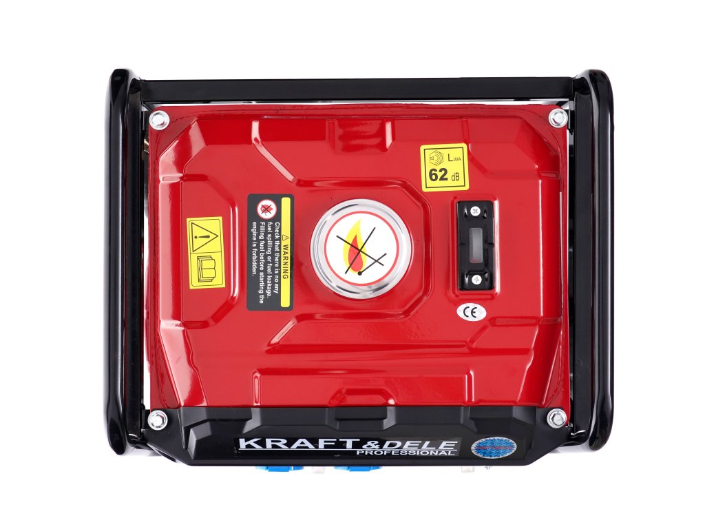 Przenośny agregat prądotwórczy jednofazowy o oznaczeniu KD150 marki Kraft&Dele przeznaczony jest do generowania prądu zmiennego 220V-230V za pomocą silnika spalinowego japońskiej konstrukcji OHV 4-suwowego o mocy 3KM oraz mocy maksymalnej prądnicy 1500W.