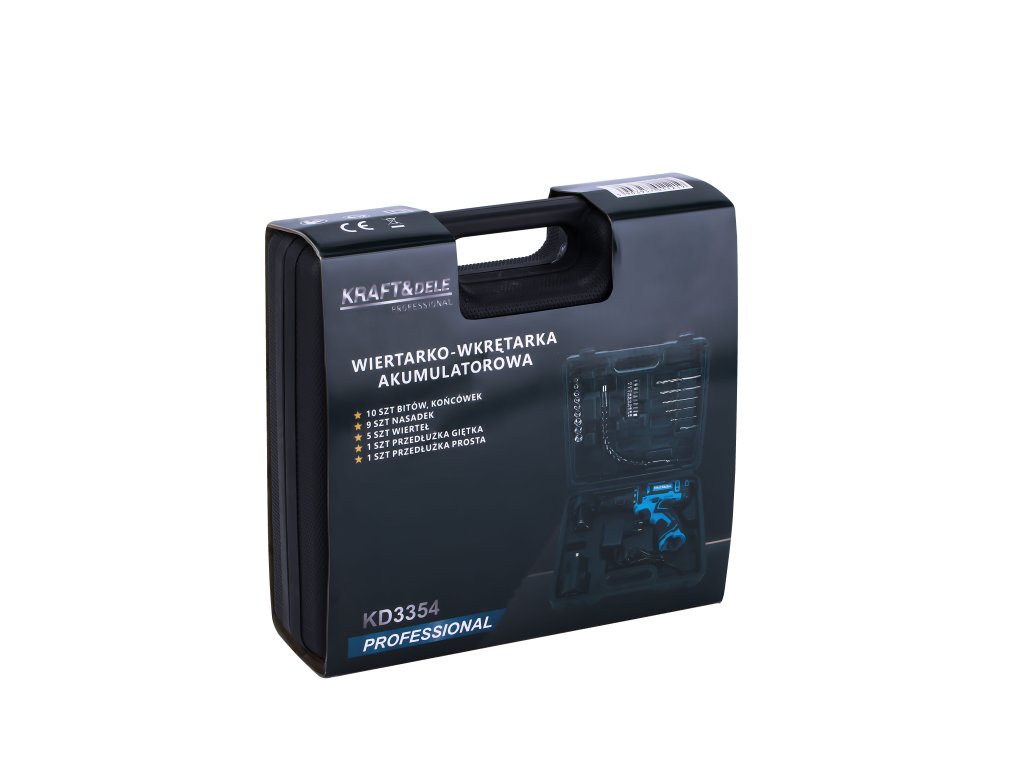 Sada akumulátorového šroubováku KD3354 je profesionální zařízení, které se vyznačuje ergonomickým designem, osvědčenou a pevnou konstrukcí a vysokou odolností. Šroubovák dobře poslouží v každé domácnosti, dílně i firmě. Použitá lithium-iontová (Li-Ion) baterie umožňuje dvojnásobné množství energie než u běžných NiMH baterií při zachování stejné hmotnosti a velikosti. Lze jej použít jako plně funkční vrtačku nebo šroubovák. Pro pohodlí a bezpečnost používání je značná část zařízení pokryta pogumováním. To zaručuje lepší přilnavost a posiluje proti pádům.