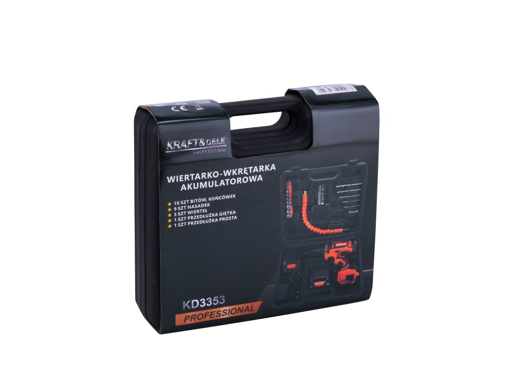 Aku vrtací šroubovák KD3353 je profesionální zařízení, které se vyznačuje ergonomickým designem, osvědčenou a pevnou konstrukcí a vysokou odolností. Šroubovák dobře poslouží v každé domácnosti, dílně i firmě. Použitá lithium-iontová (Li-Ion) baterie umožňuje dvojnásobné množství energie než u běžných NiMH baterií při zachování stejné hmotnosti a velikosti. Lze jej použít jako plně funkční vrtačku nebo šroubovák. Pro pohodlí a bezpečnost používání je značná část zařízení pokryta pogumováním. To zaručuje lepší přilnavost a posiluje proti pádům.