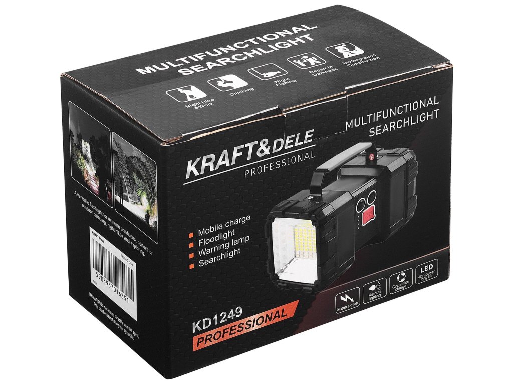 Zpříjemněte si každodenní úkoly i dobrodružství s multifunkční LED akumulátorovou svítilnou KD1249 od renomované značky Kraft&Dele. Tato všestranná svítilna je navržena tak, aby vám poskytla spolehlivé osvětlení, mobilní nabíjení a bezpečnostní signalizaci v jednom kompaktním a odolném balení. Ať už pracujete v dílně, kempujete v přírodě, nebo potřebujete spolehlivý zdroj světla pro domácí nouzové situace, model KD1249 je připraven splnit vaše požadavky.