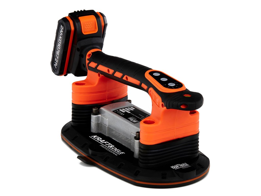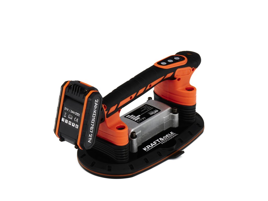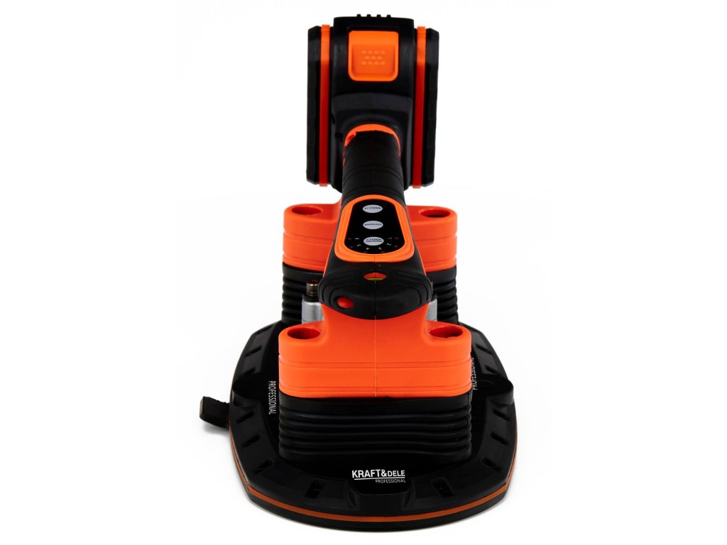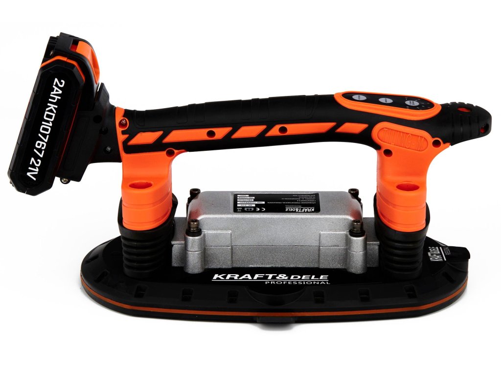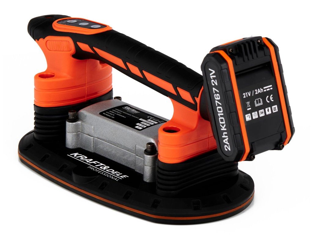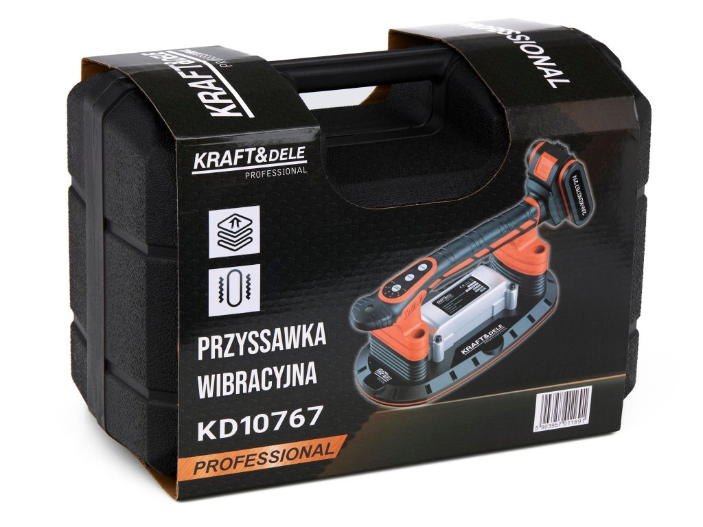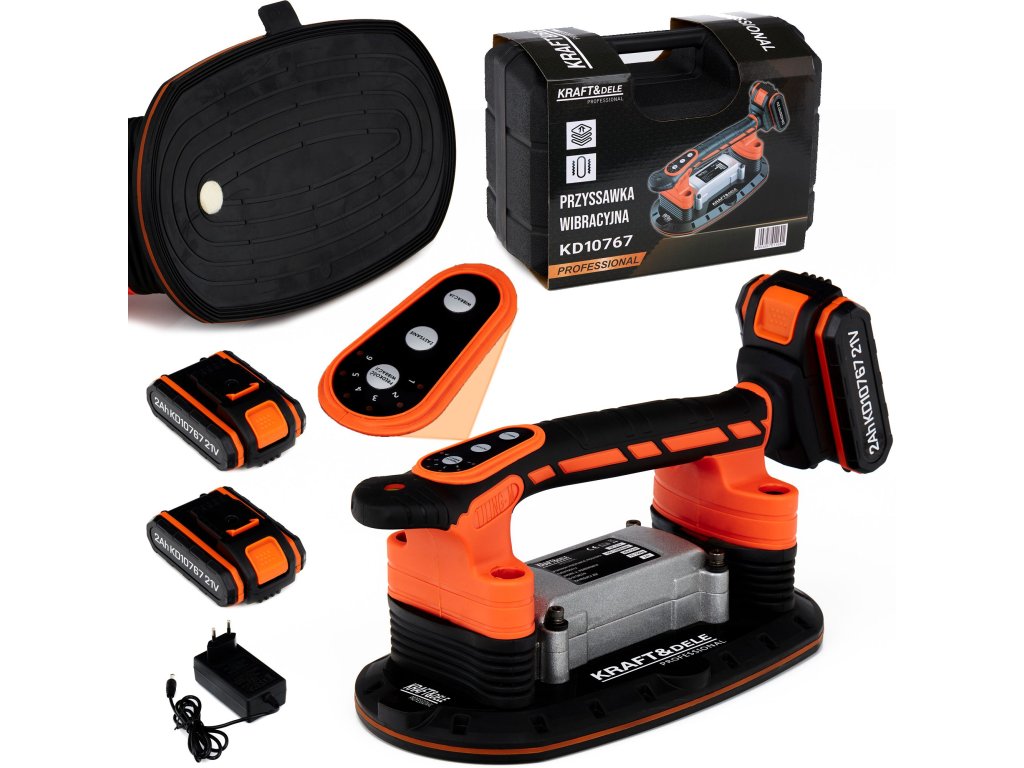 Bezdrátová vibrační přísavka na dlaždice, model KD10767, je nepostradatelným nástrojem pro pokládku obkladů. Umožňuje snadné a přesné umístění dlaždic díky své silné přísavce, která dokáže zvednout předměty o hmotnosti až 150 kg. Vestavěná vibrační funkce účinně odstraňuje vzduchové bubliny zpod dlaždice, čímž eliminuje riziko vzniku dutin a prasklin. Výsledkem je odolné a rovnoměrné přilnutí dlaždic, což výrazně zlepšuje kvalitu práce. Přísavka má 6stupňové nastavení vibrací, které umožňuje nastavit intenzitu podle typu materiálu a individuálních potřeb uživatele. Kompaktní design a napájení z baterie umožňují pohodlnou, rychlou a nezávislou práci na zdroji energie.
