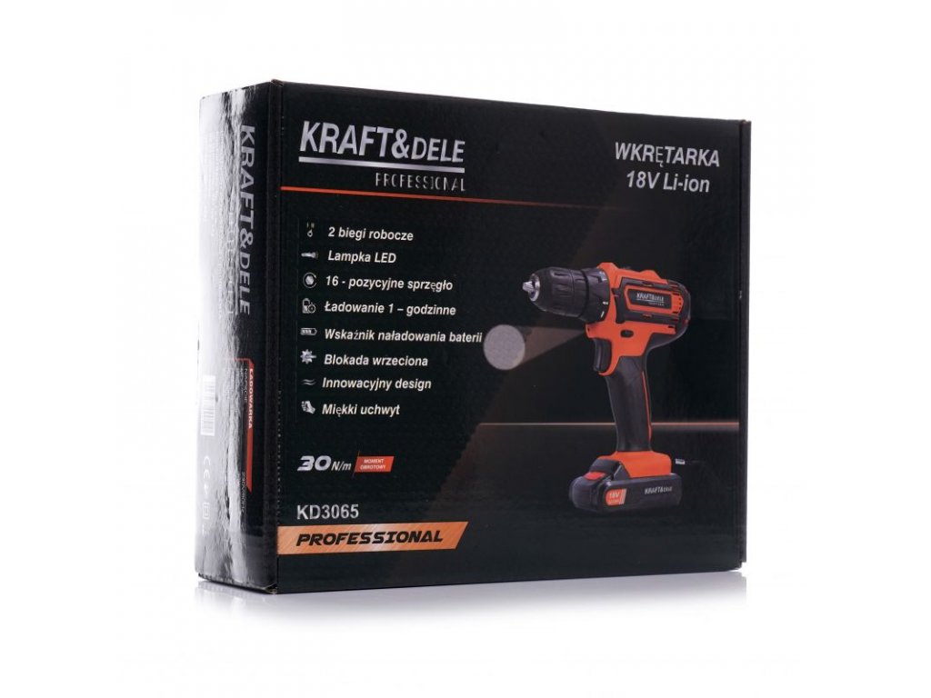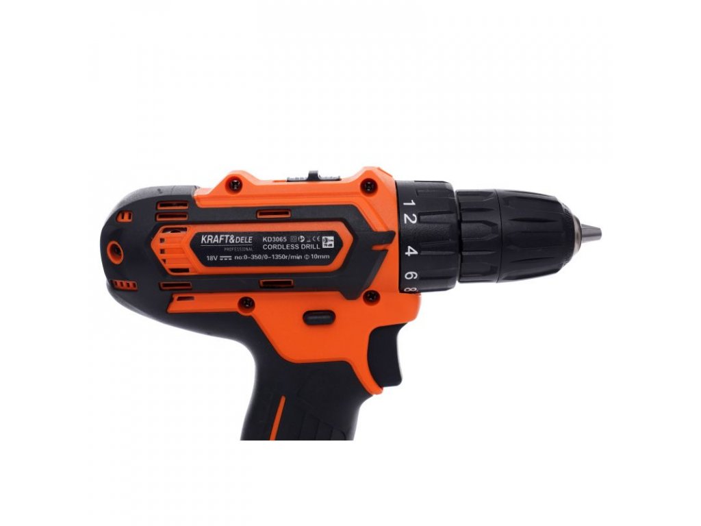 Akumulátorová vrtačka/šroubovák s kapacitou baterie 1 300 mAh.Lithium-iontová baterie 18V nejnovější generace. Akumulátorová vrtačka KD3065 značky Kraft&Dele poháněná lithium-iontovou baterií nejnovější technologie, díky čemuž dosáhne dvojnásobného množství energie než v běžných NiMH bateriích při zachování stejné hmotnosti a velikosti.