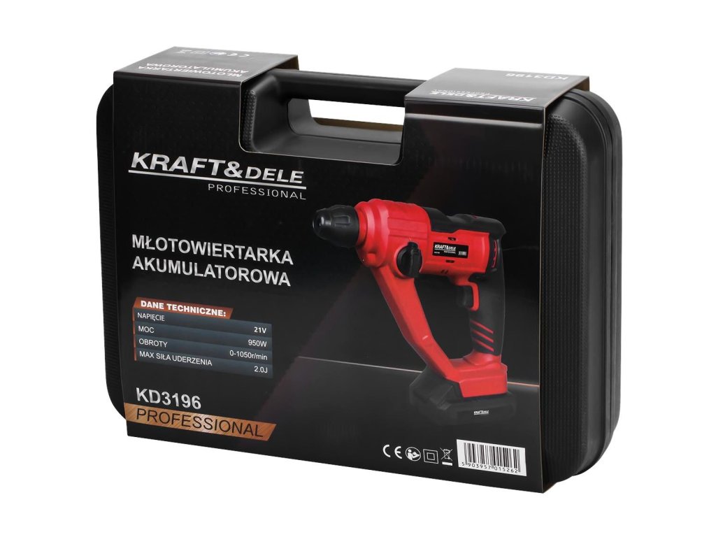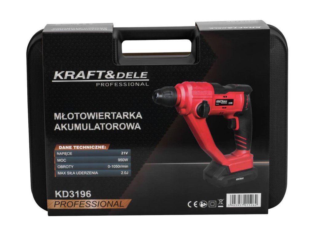 Zpříjemněte si každou práci s naším špičkovým akumulátorovým kladivem, které přináší revoluci do světa stavebních a renovačních projektů. Model KD3196 od renomované značky Kraft&Dele je navržen s ohledem na maximální efektivitu a spolehlivost, ať už jste profesionál na stavbě, nebo kutil v domácí dílně. Díky výkonnému 21V napájení a bezkartáčovému motoru s příkonem 950W dosáhnete bezkonkurenční rychlosti a preciznosti při každém vrtání.
