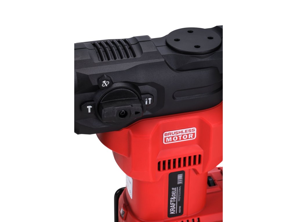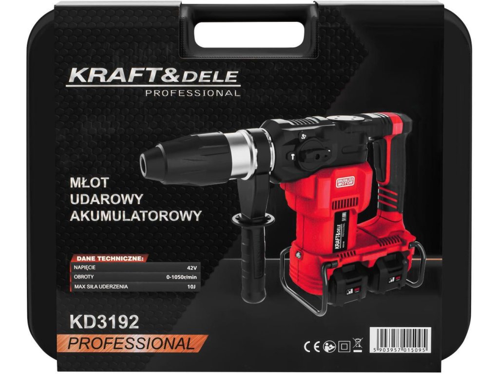Představujeme vám špičkové aku vrtací kladivo Kraft&Dele KD3192, které je navrženo pro maximální výkon a svobodu pohybu při nejnáročnějších stavebních a renovačních pracích. S napětím 42V a impozantní silou úderu 10J, dosaženou díky zapojení dvou akumulátorů, se stává nepostradatelným partnerem pro profesionály i náročné kutily. Perfektně si poradí s vrtáním a sekáním do betonu, cihel a dalších tvrdých materiálů, kde je potřeba skutečná síla a spolehlivost.
