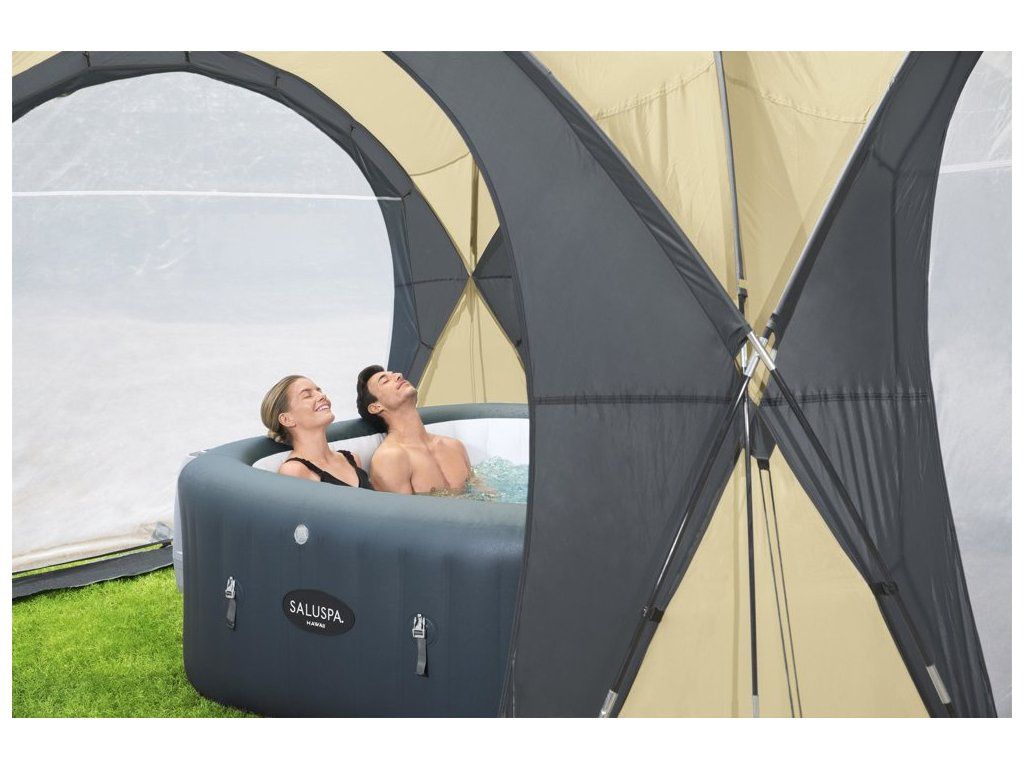 Zpříjemněte si horké letní dny a prodlužte si sezónu relaxace s elegantním a praktickým rozkládacím altánem Bestway 60305. Tento univerzální stan pro bazény a vířivky, s půdorysem 390 x 390 cm a výškou 255 cm, je ideálním řešením pro každého, kdo hledá soukromí a spolehlivou ochranu před sluncem, deštěm a dalšími povětrnostními vlivy. Díky své kompatibilitě se všemi nafukovacími SPA a bazény o průměru až 3,66 m se stane nepostradatelným doplňkem vaší zahrady.