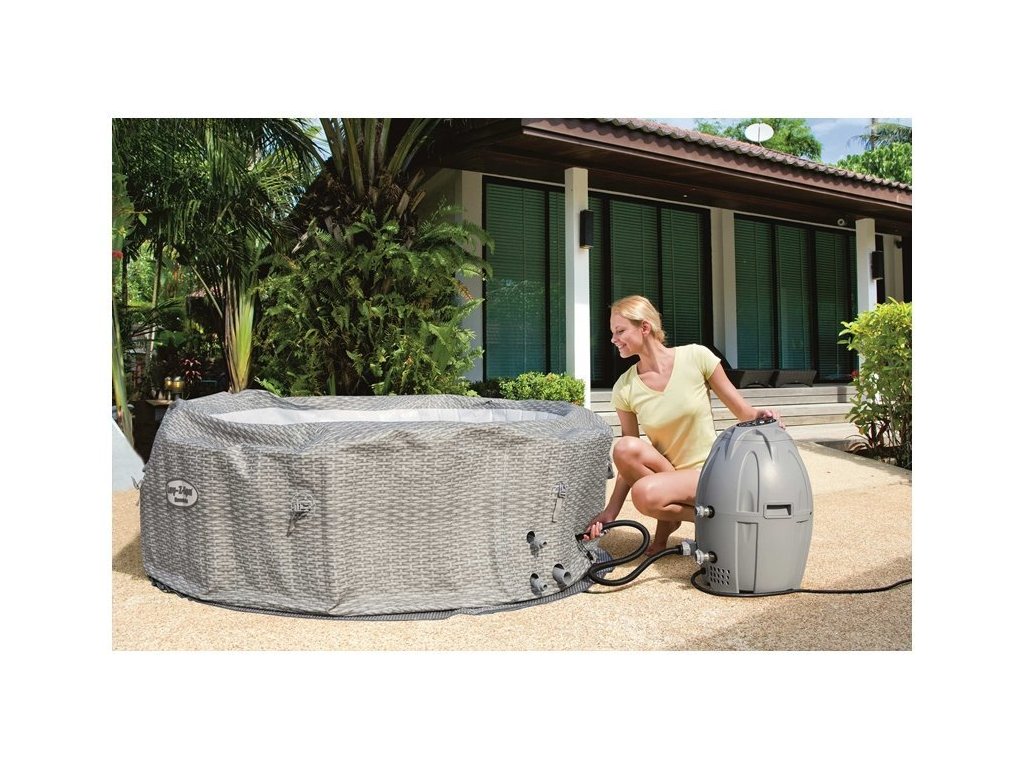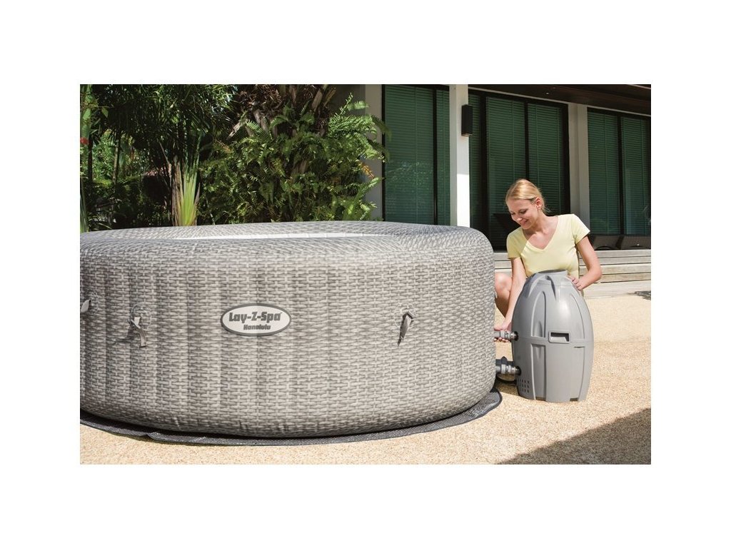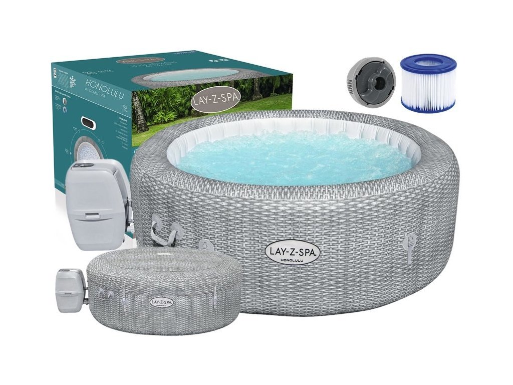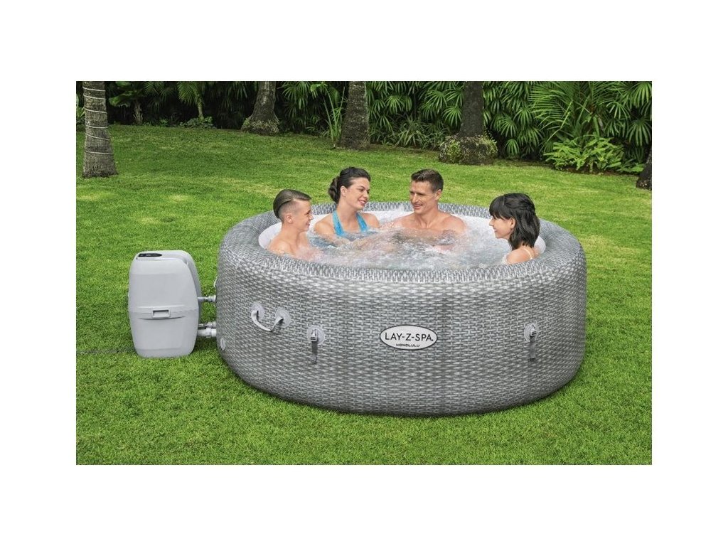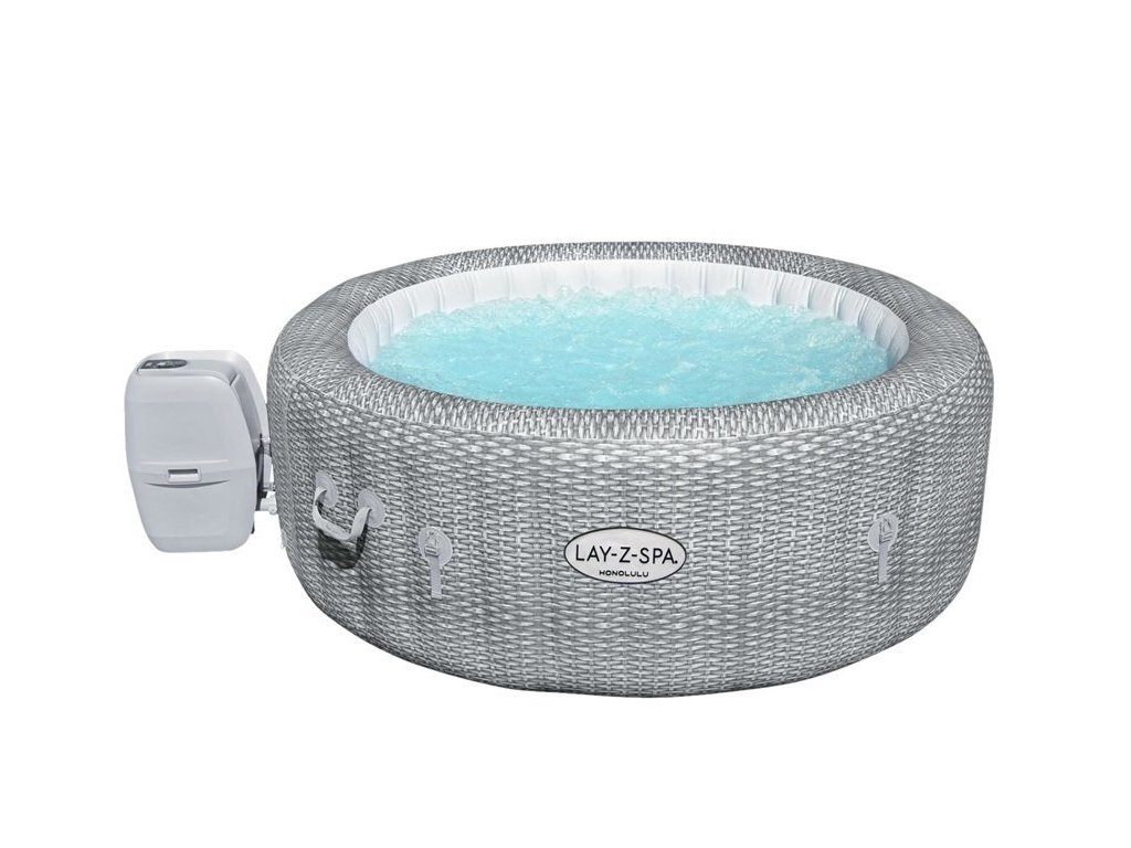 Nafukovací vířivka s masáží a ohřívačem vody značky Bestway o rozměrech 196x71 cm pro 6 osob. Nestačí Vám zahradní bazén? Nyní si můžete užít luxus doma tím, že si opatříte nafukovací vířivku s ohřívačem vody. Nafukovací Lay-Z-spa od společnosti Bestway, model Honolulu, je jedinečná vířivka, kterou můžete mít ve své zahradě nebo doma. I v chladnějších dnech můžete skočit do horké vody. Tato bublinková vířivka je osvěžující a můžete v ní úžasně relaxovat. Vířivka se vyznačuje silnými nafukovacími stěnami. S vířivkou si můžete užívat pohodlí Vy i Vaši blízcí. Systém AirJet obsahuje 140 trysek, které uvolňují bubliny ze dna bazénu vířivky a vytváření tak teplé, bublající prostředí. Bubliny Vám pomohou relaxovat a odpočinout si v pohodlí Vašeho domova. Nafukovací stěny této vířivky jsou vyrobeny z odolného materiálu DuraPlus™ odolného proti propíchnutí, který zabraňuje poškození. Tento typ vnitřního designu zabraňuje roztažení, což umožňuje vířivce udržovat stejný tvar bez ohledu na to, kolikrát je nafouknutá a vyfouknutá.