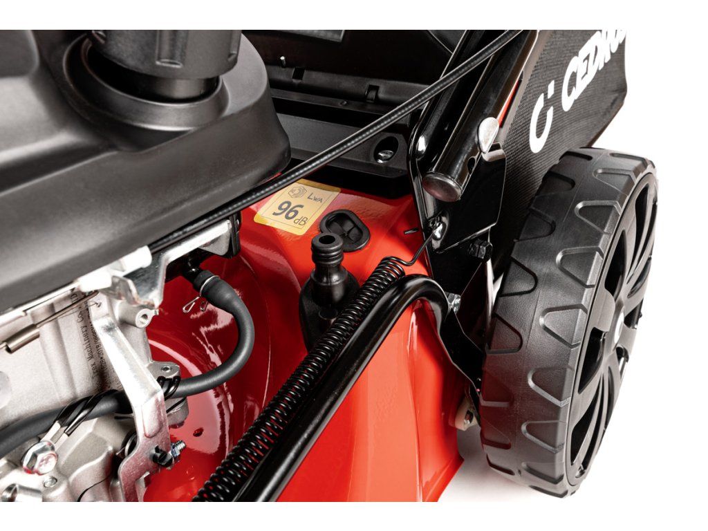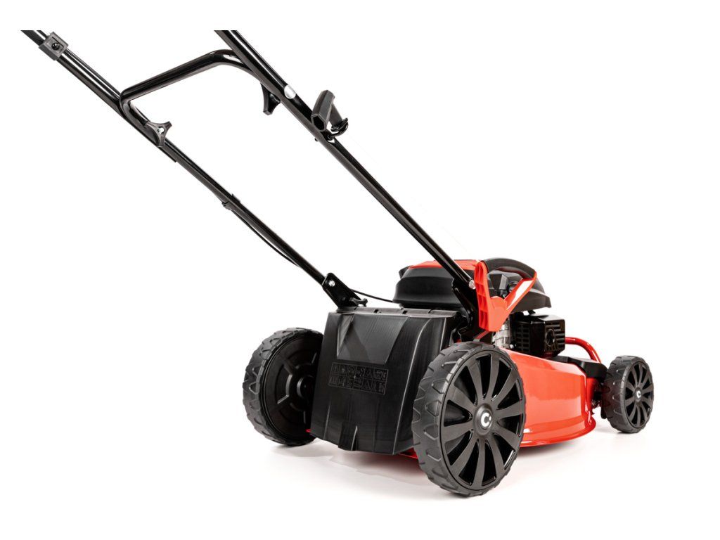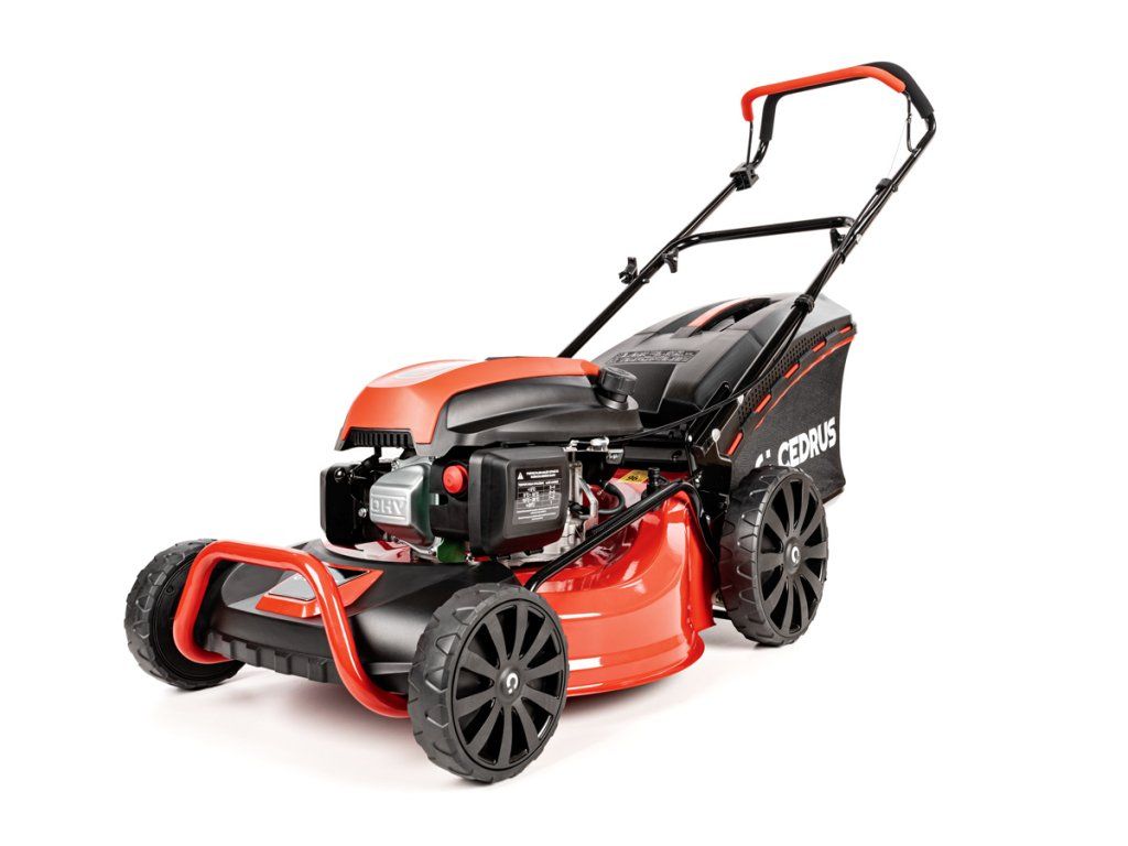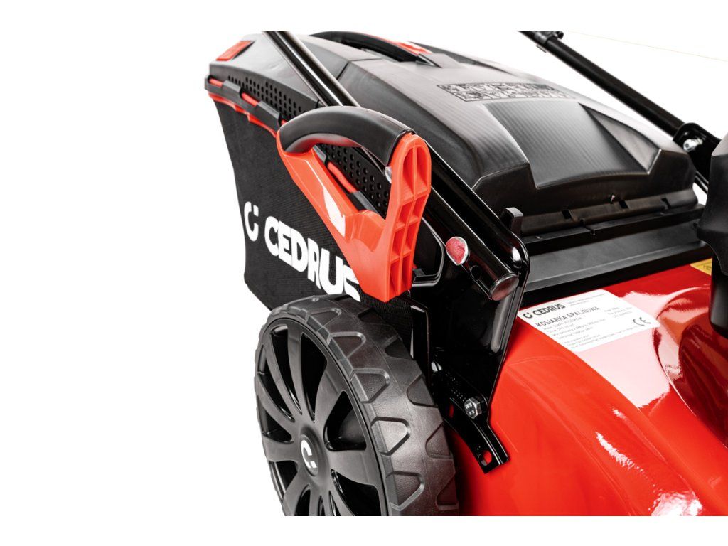 Benzínová sekačka Cedrus KS48 bez pojezdu pro trávníky do 1500 m². Záběr 48 cm, sběr, boční výhoz i mulčování.