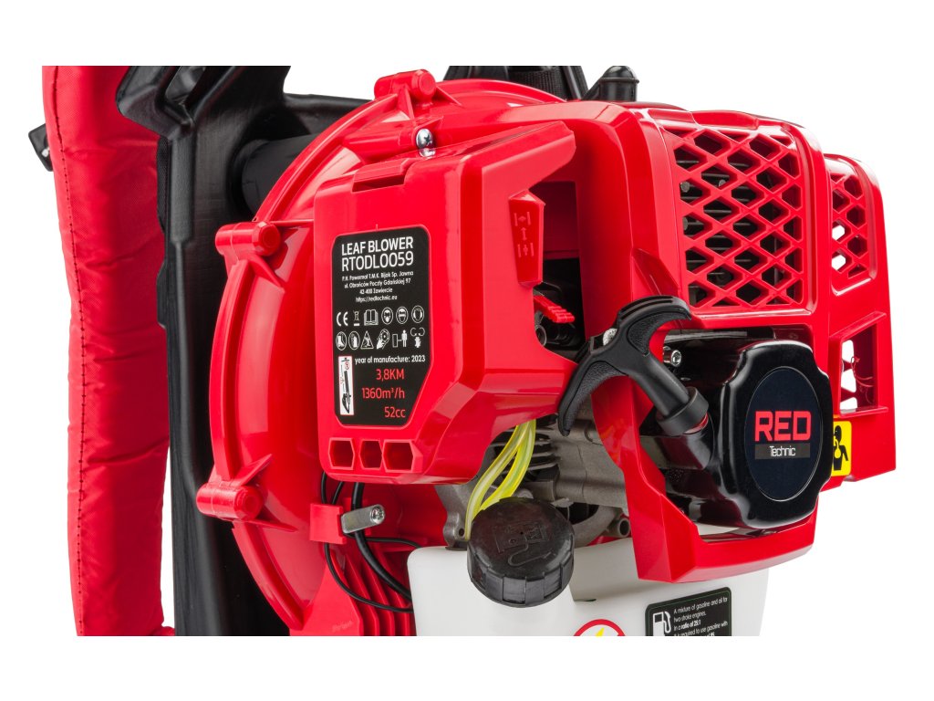Nabízí naprostou volnost pohybu bez kabelů a vysoký výkon motoru, který si poradí s listím i lehkým sněhem. Díky pohodlnému polstrování, joystickové rukojeti a robustní konstrukci je ideální volbou pro náročné uživatele, kteří hledají efektivní, odolný a komfortní nástroj pro celoroční údržbu zahrady. Benzínový foukač RED TECHNIC a jeho robustní konstrukce a kvalitní zpracování zajišťují spolehlivost a dlouhodobé používání. Montážní sada umožňuje rychlou aktivaci foukače, takže můžete okamžitě začít pracovat. Spalovací foukač RED TECHNIC je mimořádně robustní a odolný vůči extrémním povětrnostním podmínkám, což z něj činí nepostradatelný nástroj pro podzimní a zimní sezónu. Jeho působivý výkon a účinnost umožňují rychle a efektivně se zbavit nepoddajného listí nebo nadýchaného sněhu, což uživateli šetří čas a námahu. Rukojeť je vybavena spouštěčem, který zvyšuje otáčky motoru a provádí silný výfuk vzduchu. Je rovněž vybavena spínačem motoru. Konstrukce výstupu foukače se skládá z několika kusů pevných trubek z odolného a lehkého plastu.