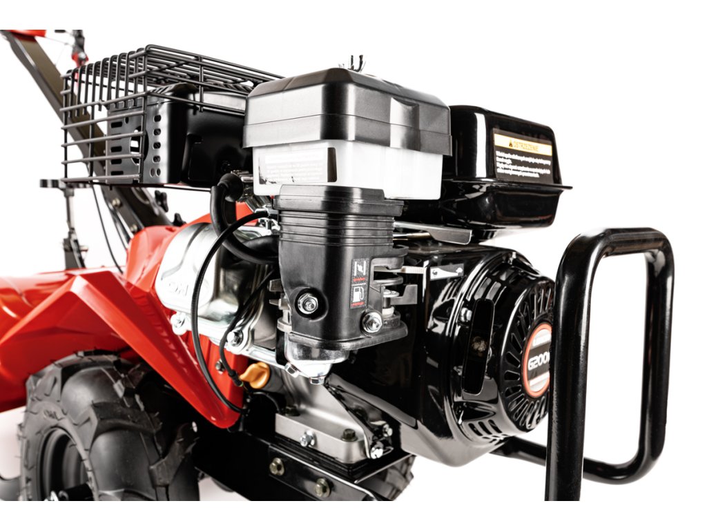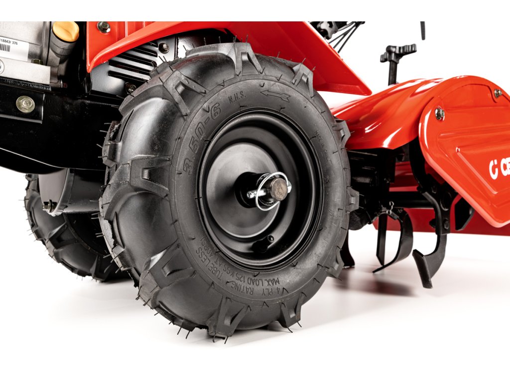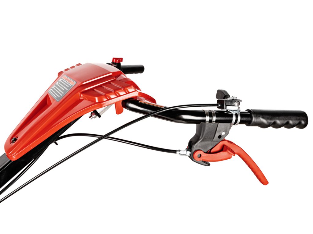 - Kultivátor je vybaven mechanickou převodovkou s 1 rychlostí vpřed a 1 vzad, což umožňuje snadné ovládání i v náročném terénu. Díky robustním 13palcovým kolům je manipulace s kultivátorem pohodlná a snadná.