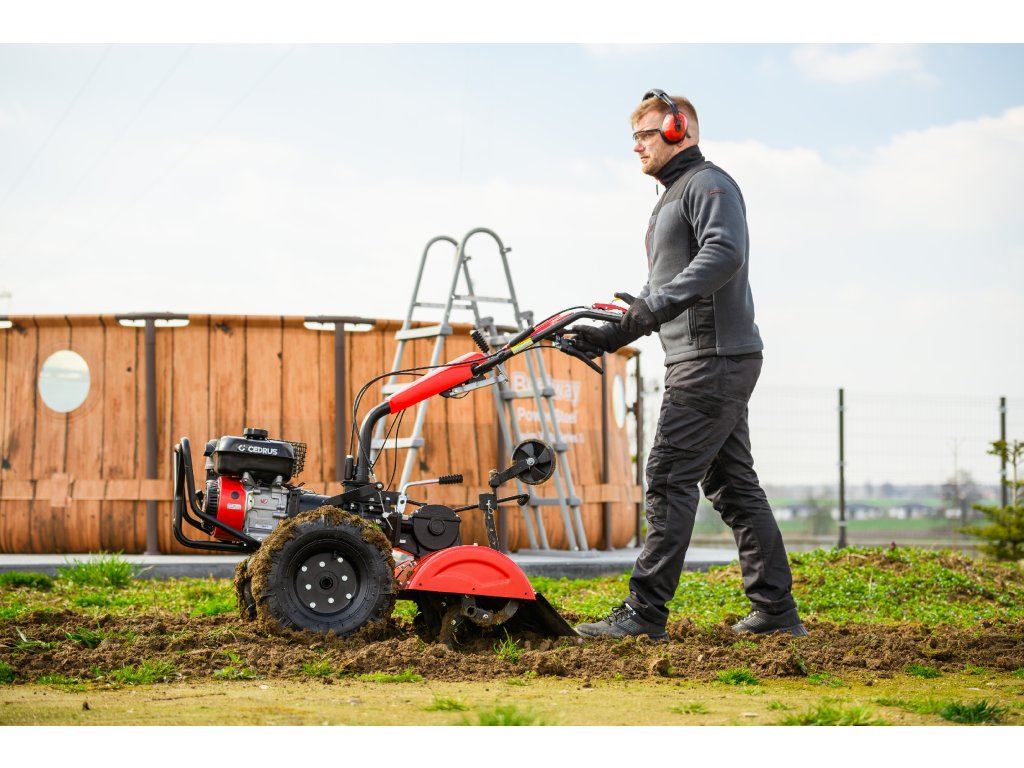 - Díky šířce záběru 620 mm a nastavitelné pracovní hloubce více než 100 mm umožňuje efektivní zpracování půdy i v těžších podmínkách. Robustní konstrukce zajišťuje dlouhou životnost a vysokou odolnost při každodenním používání.