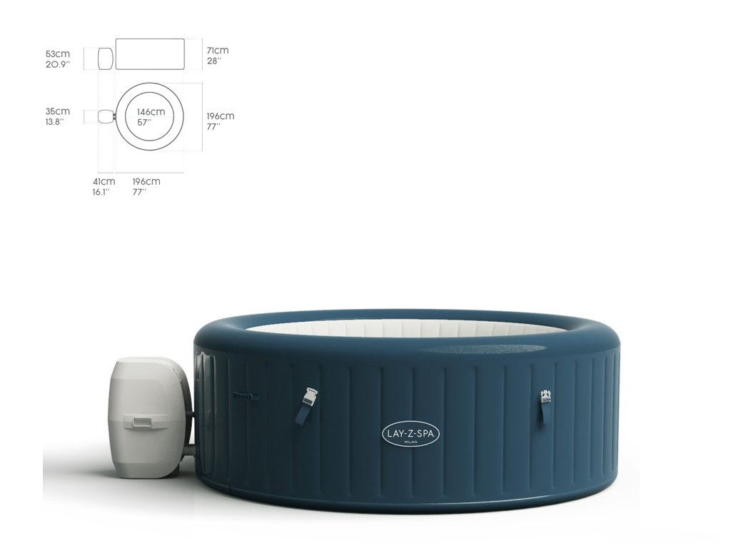 Nafukovací hydromasážní bazén Milán je celoročním relaxem pro celou rodinu! Díky velké ploše (uvnitř 146cm) se do něj bez problémů vejde 4-6 osob, proto je ideální pro páry a rodiny. Pohodlná nafukovací jacuzzi poskytne blaženou relaxaci vám i vašim přátelům a umožní vám organizovat romantické chvíle nebo radostné chvíle s vašimi dětmi.