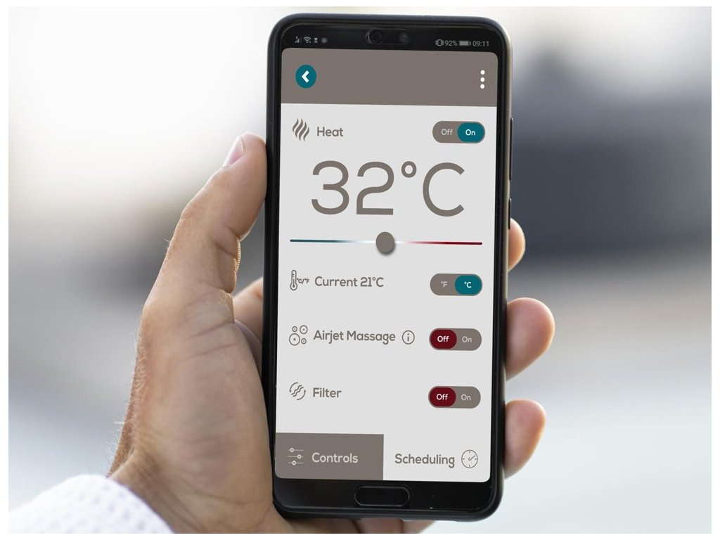 - Vestavěný modul Wi-Fi, lázně lze ovládat pomocí aplikace v telefonu