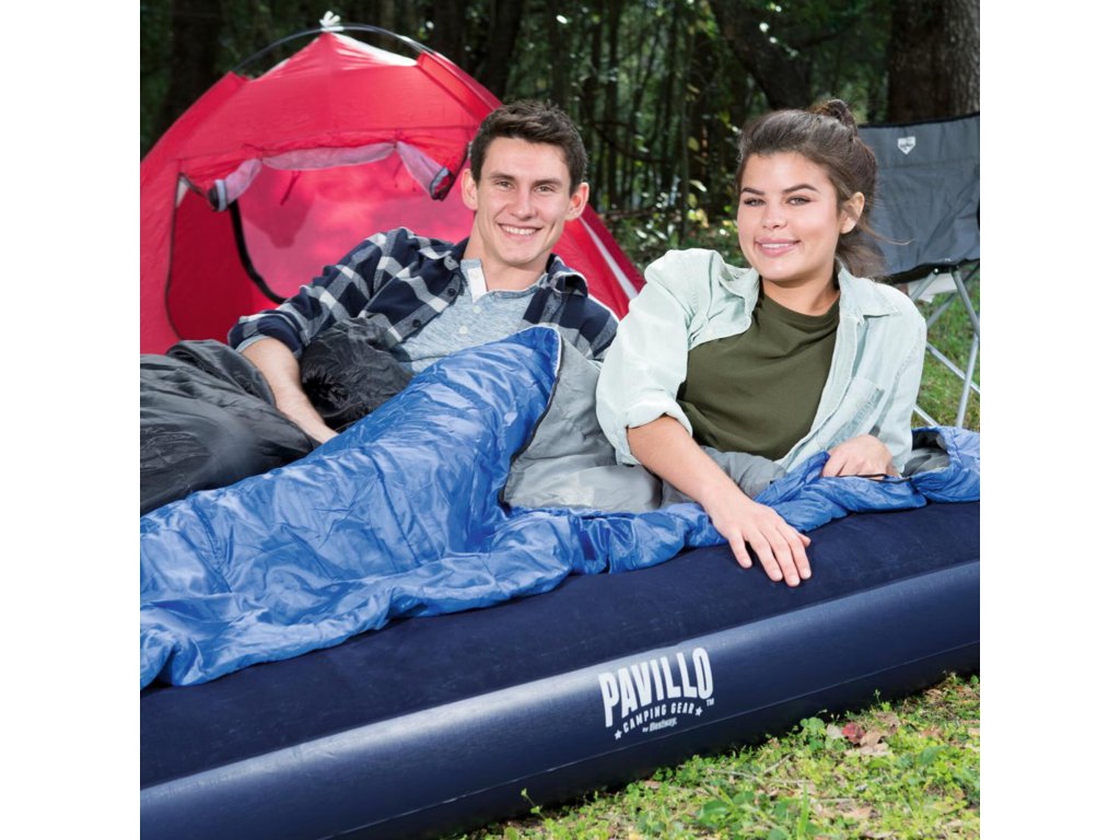 Nafukovací postel je vyrobena z příjemného semišového materiálu a poskytne nejen Vám, ale i Vašim hostům pohodlný odpočinek a spánek po celou noc.