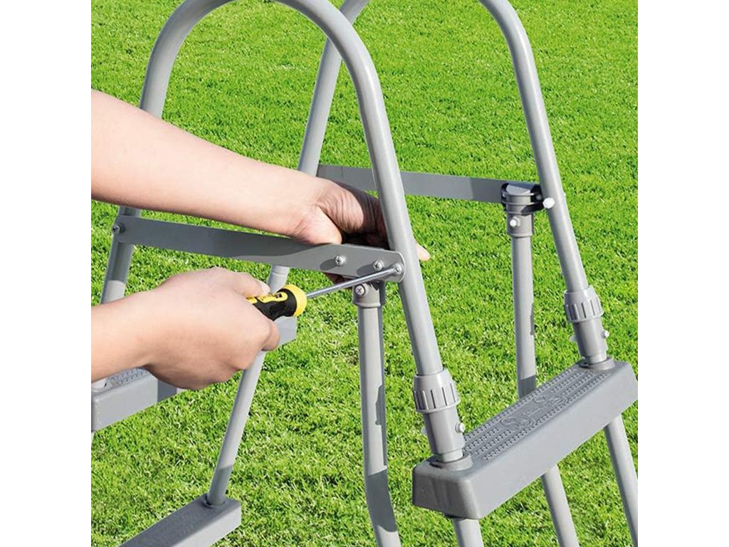 Bazénové schůdky od firmy Bestway, jsou určeny především pro nadzemní kruhové bazény s výškou stěny do 107 cm.