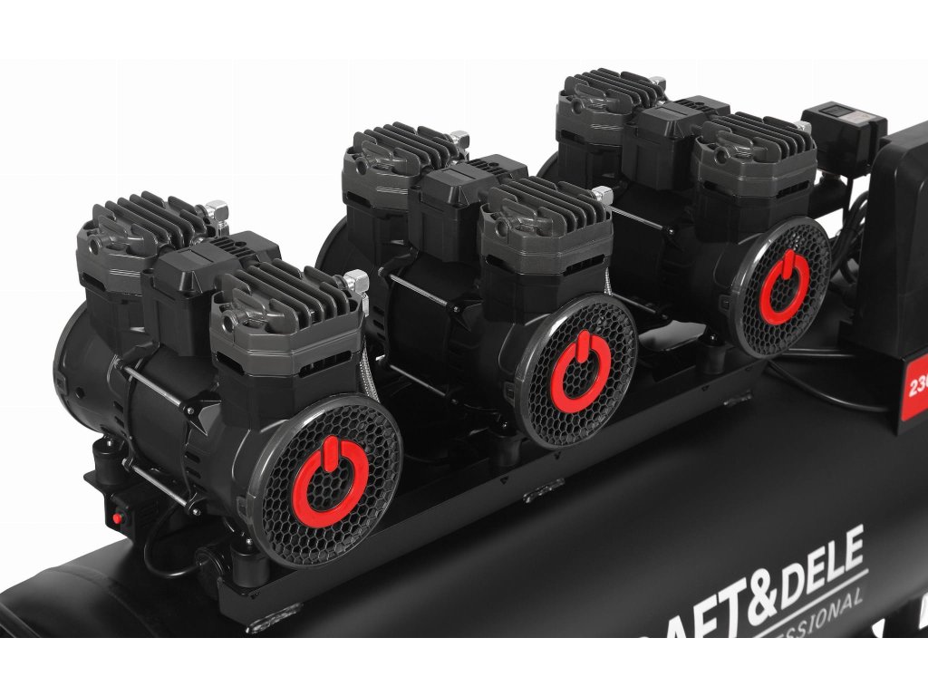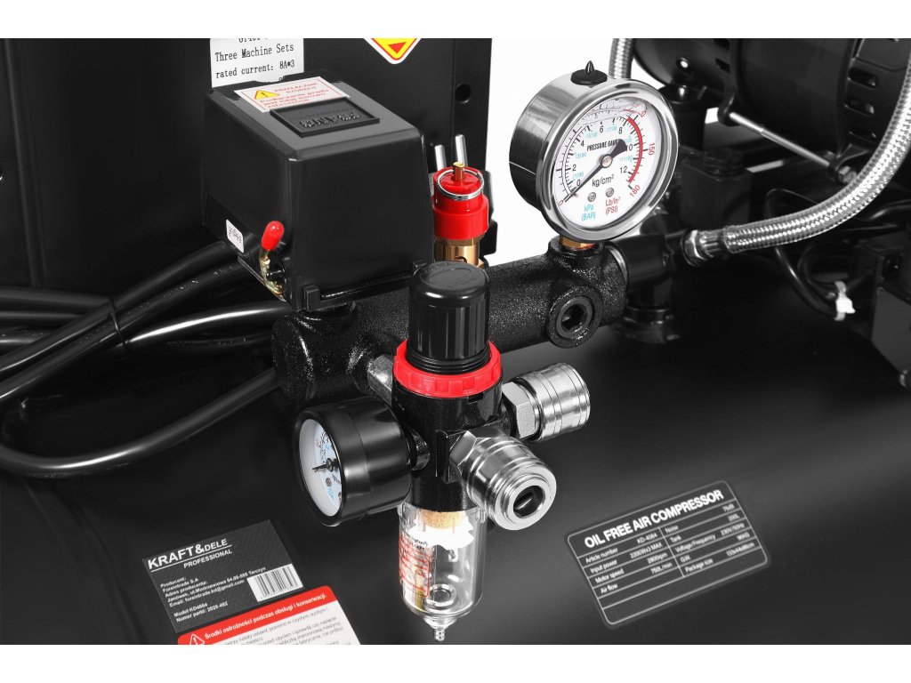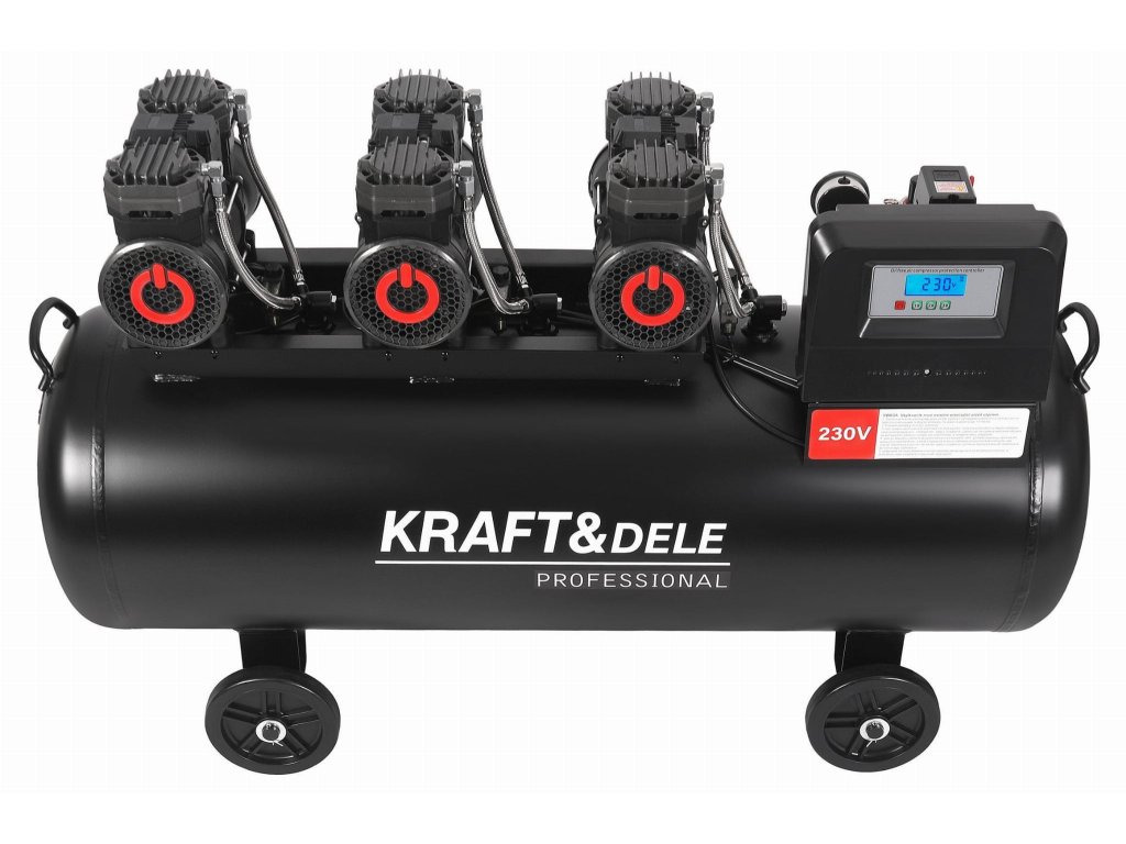 KD4084 je vysoce výkonný bezolejový kompresor s objemem 200 litrů, navržený pro intenzivní nasazení v profesionálních dílnách, servisech a lakovnách. Jeho hlavní předností je mimořádná efektivita a minimální nároky na údržbu – díky bezolejové technologii odpadá výměna oleje a zařízení je připraveno k okamžitému provozu. Tři silné motory 2200W zaručují vysoký pracovní výkon, zatímco tichý chod 75 dB umožňuje pohodlné použití i v uzavřených prostorech. Integrované ochranné prvky prodlužují životnost a zajišťují bezproblémový provoz.