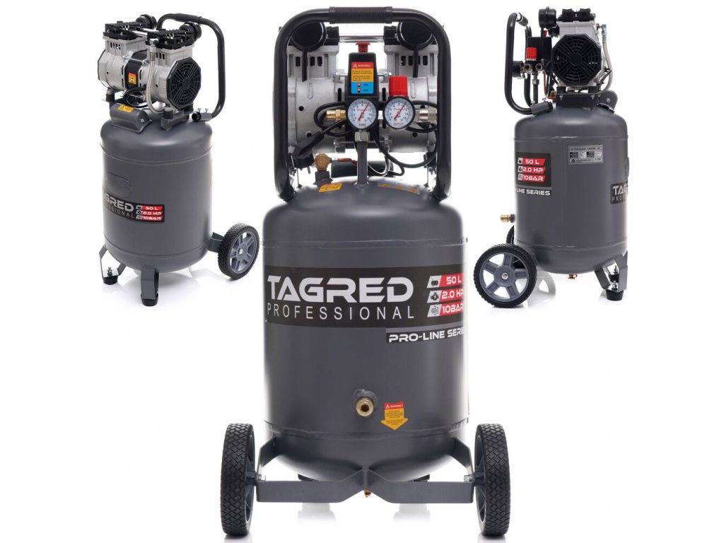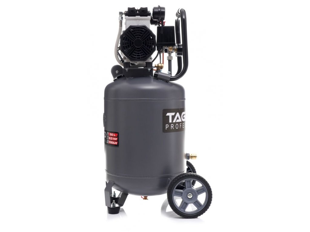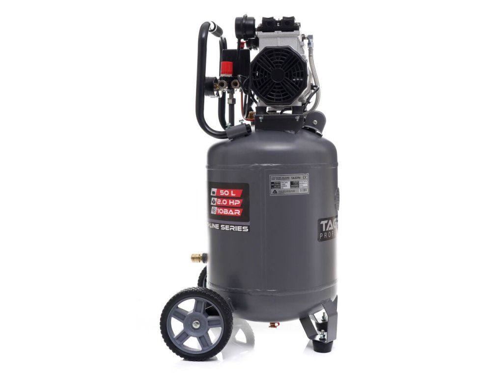 Bezolejový vertikální kompresor s odlučovačem 50l, 230V, 2 písty 2000W 10 BAR TA3396