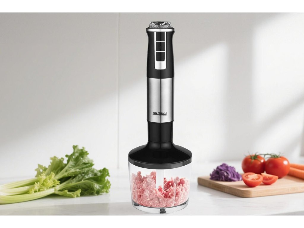 KD4110 marki KRAFT&DELE to mocny i wielofunkcyjny blender stworzony z myślą o intensywnym użytkowaniu w kuchni domowej oraz profesjonalnej. Dzięki wysokiej mocy 1500W oraz dużej prędkości obrotowej urządzenie bez problemu radzi sobie z miksowaniem, blendowaniem i rozdrabnianiem nawet twardszych składników.